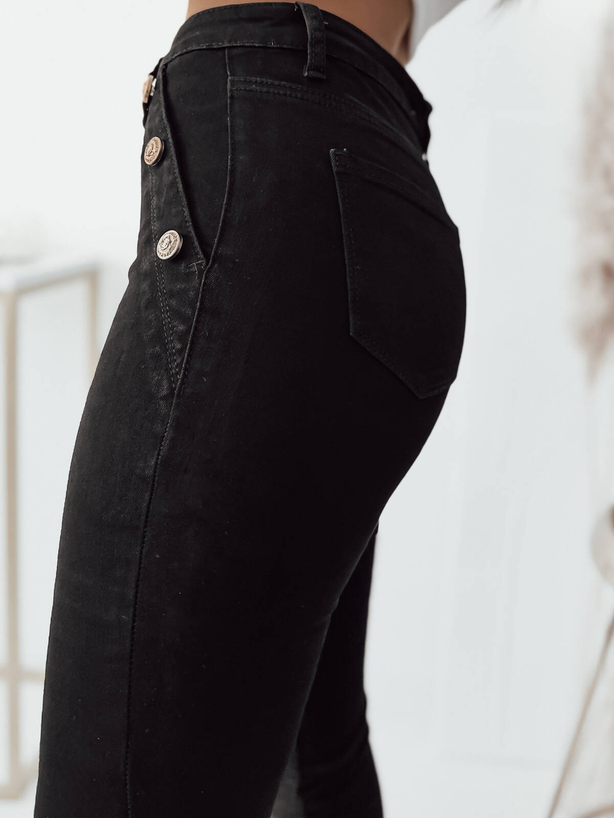 SPODNIE JEANSOWE Z OZDOBNYMI GUZIKAMI- CZARNE