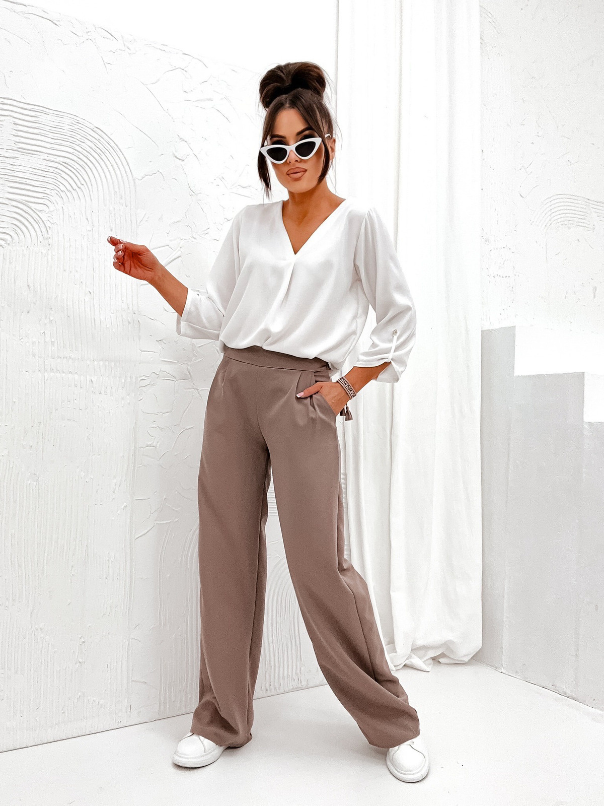 SPODNIE KULOTY Z SZEROKIMI NOGAWKAMI- CAPPUCCINO