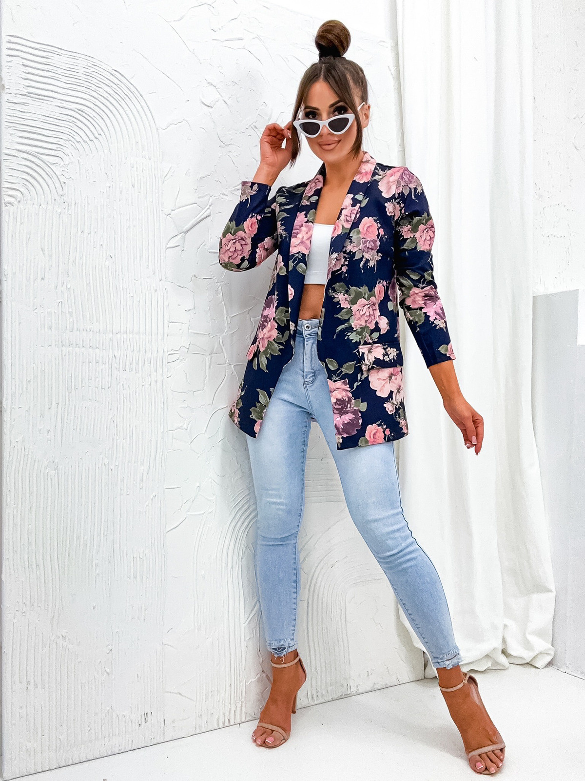 ELEGANCKA WZORZYSTA MARYNARKA- GRANATOWA