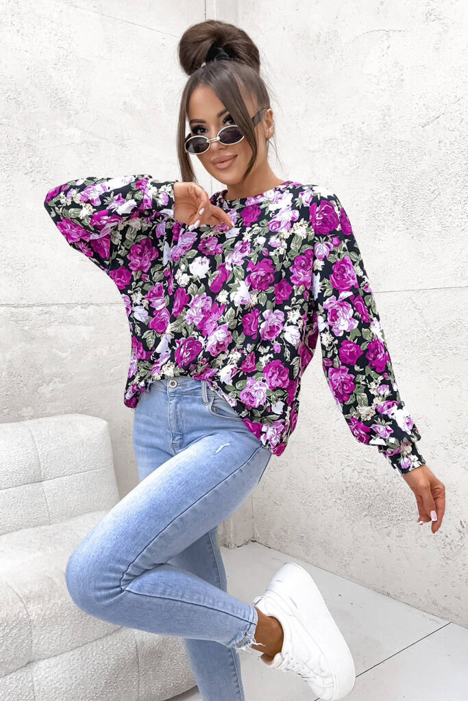 BLUZKA TUNIKA W KWIECISTY WZÓR- CZARNA