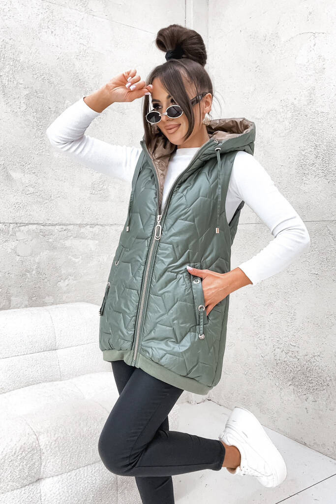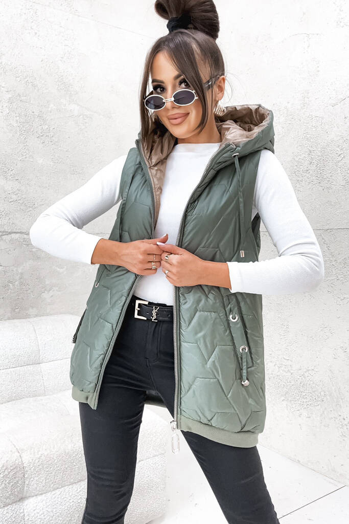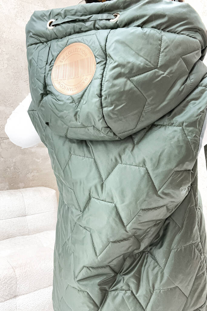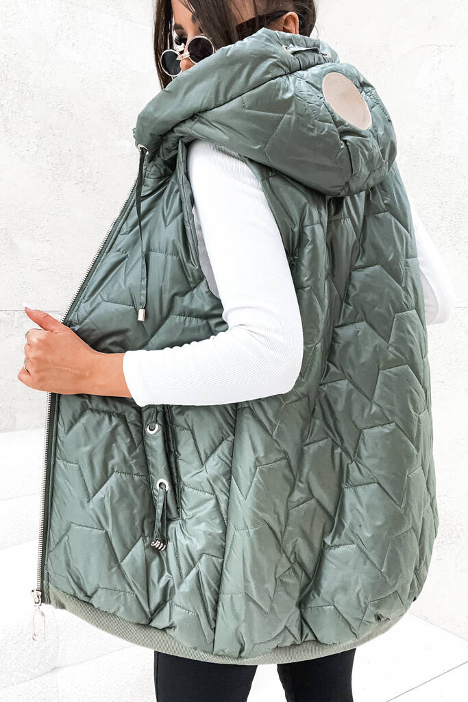 ASYMETRYCZNA KAMIZELKA Z NASZYWKĄ NA KAPTURZE- ZIELONA