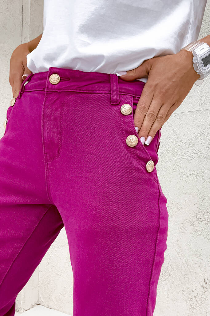 SPODNIE MOM FIT Z OZDOBNYMI GUZIKAMI NA KIESZENIACH - CIEMNY RÓŻ