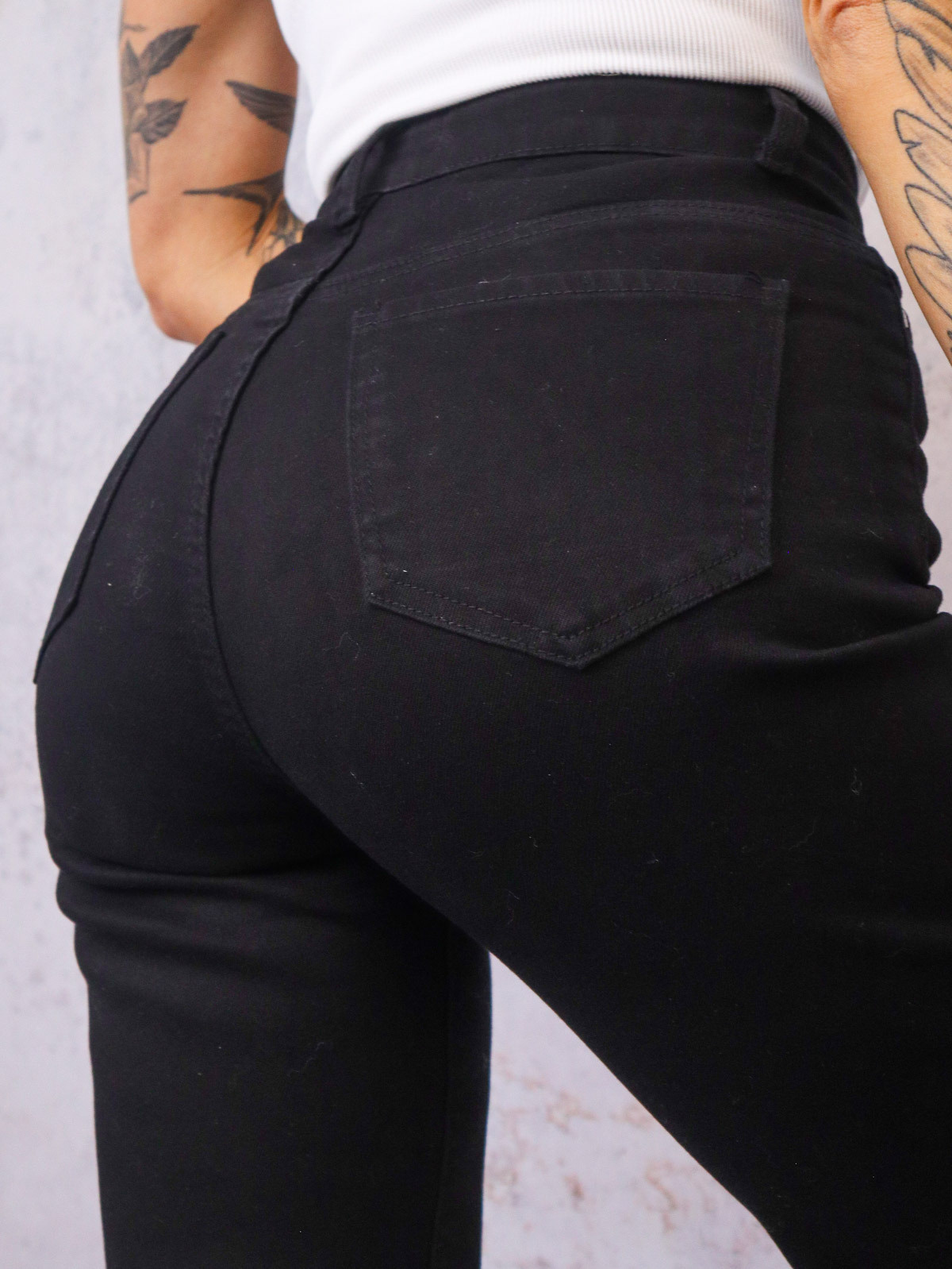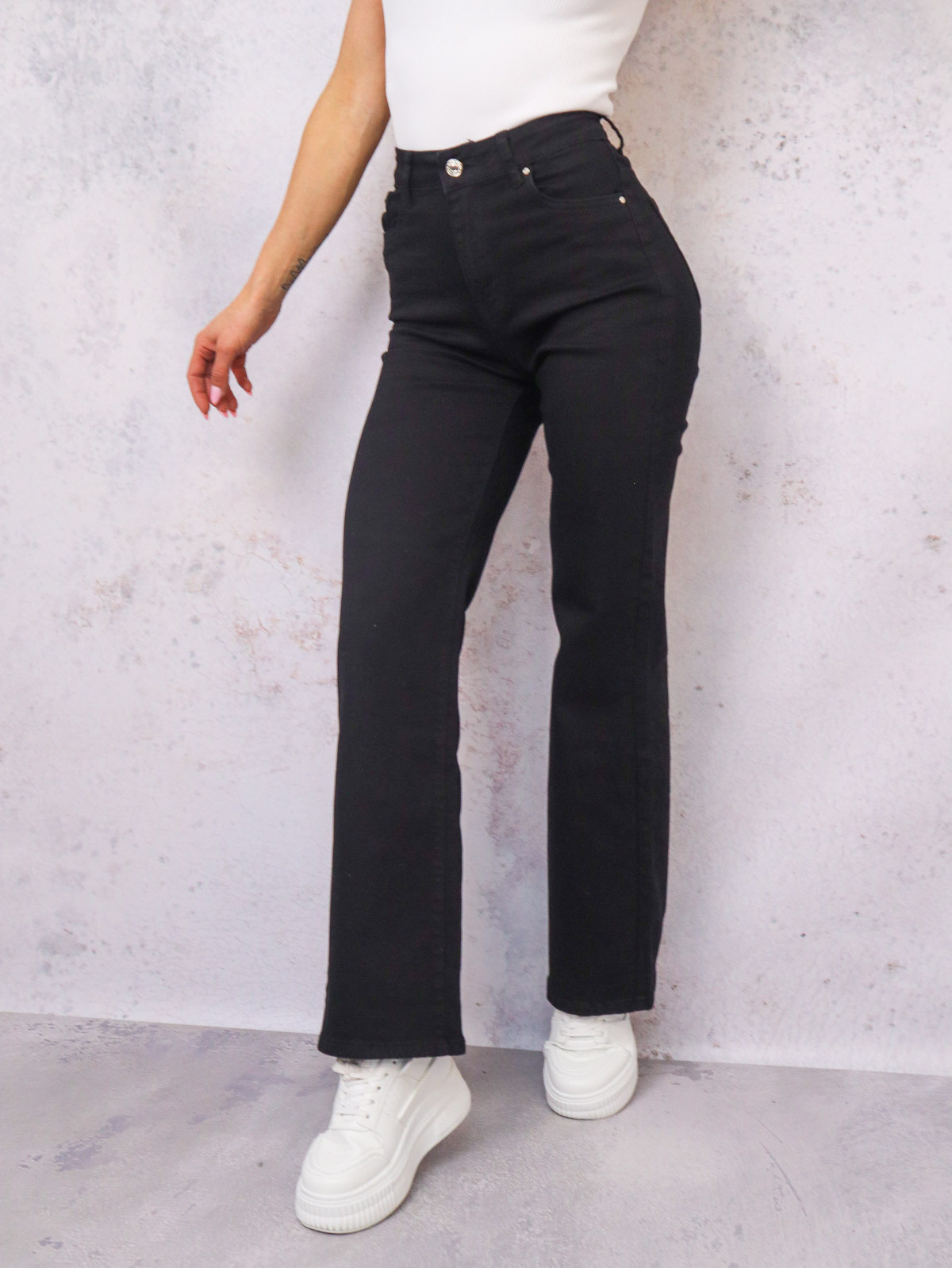 CZARNE SPODNIE JEANSOWE Z SZEROKIMI NOGAWKAMI