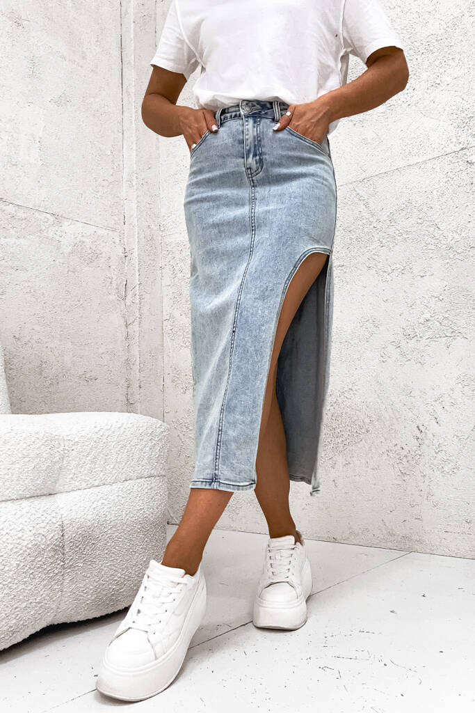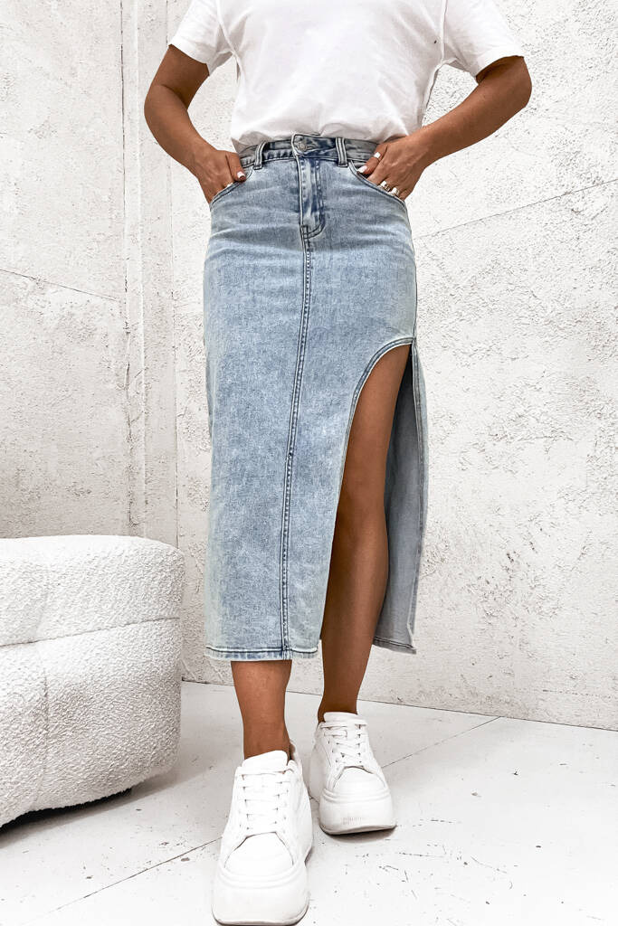 SPÓDNICA JEANSOWA MIDI Z WYCIĘCIEM- NIEBIESKA
