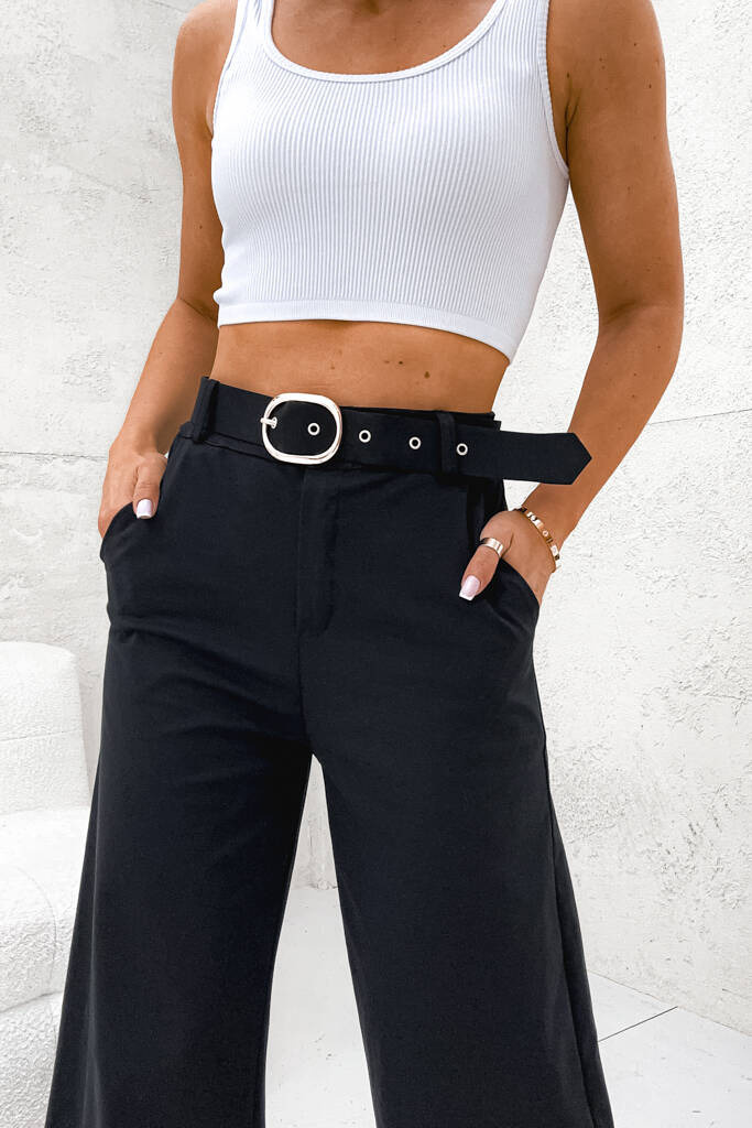 SPODNIE BAWEŁNIANE ONESIZE Z SZEROKĄ NOGAWKĄ I PASKIEM- CZARNE