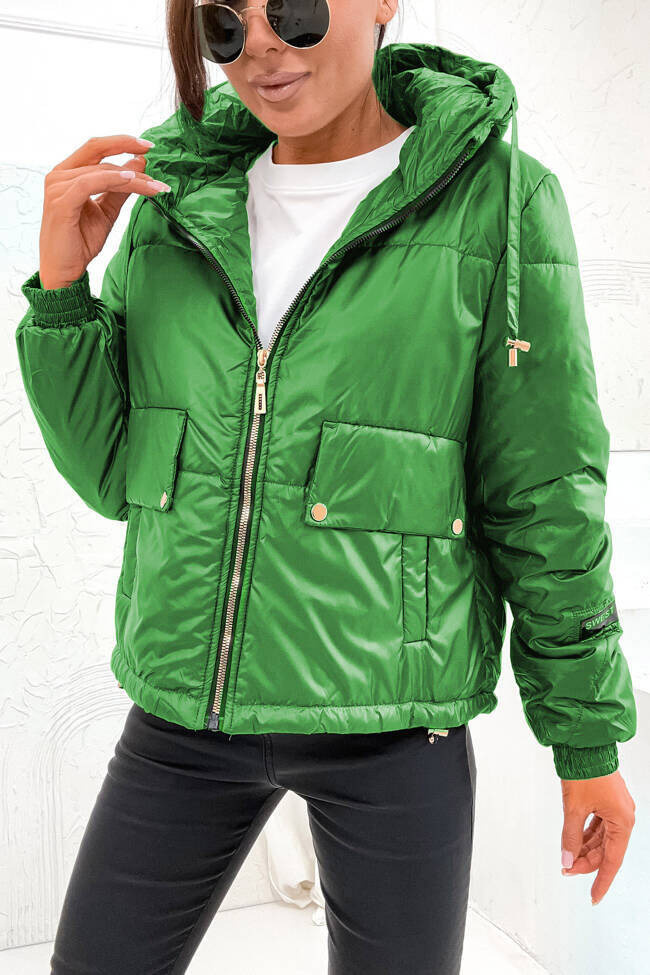 KURTKA ASYMETRYCZNA ZE ZŁOTYMI ELEMENTAMI- JASNO ZIELONA