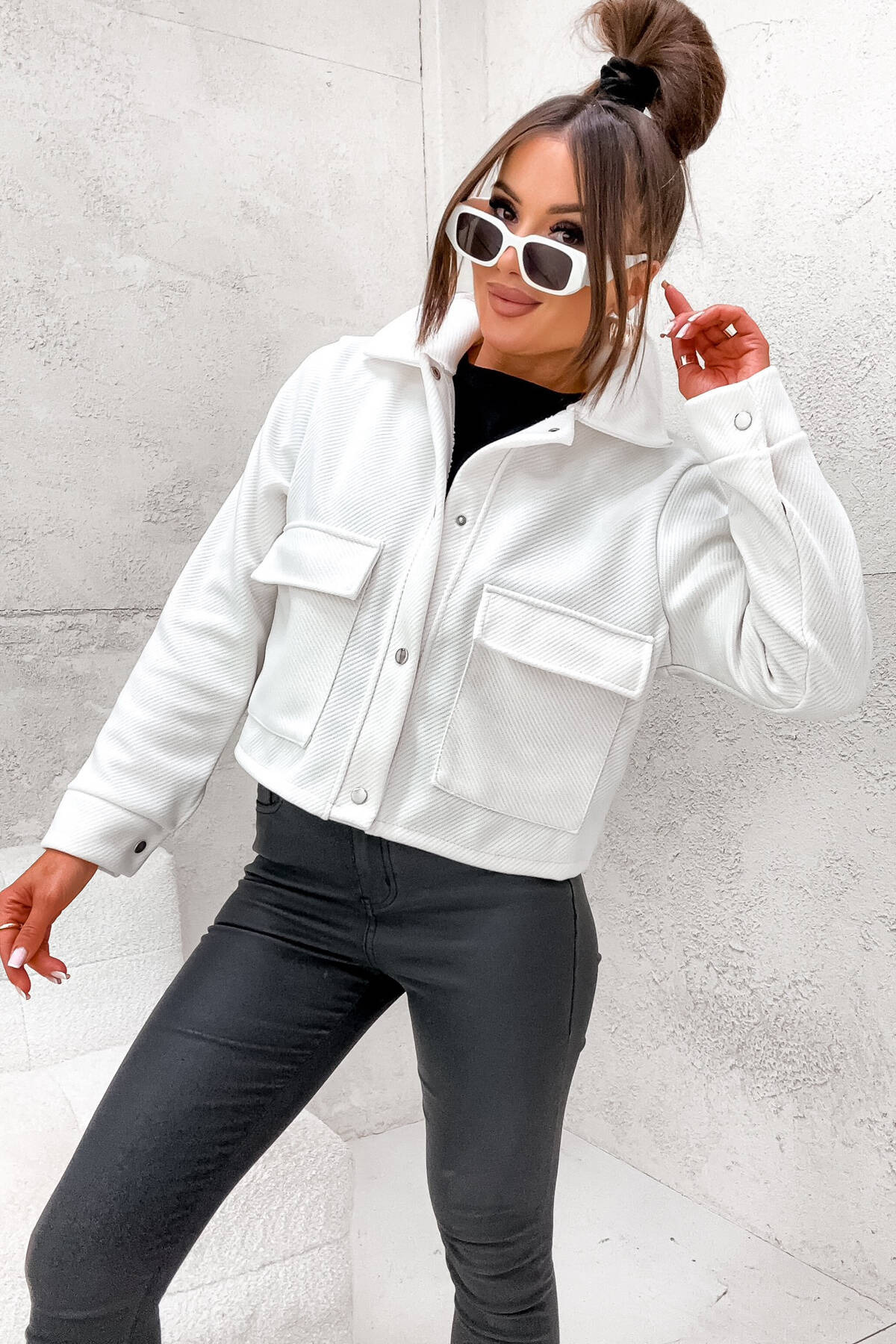 KRÓTKA KURTKA Z KIESZENIAMI ZAPINANA NA NAPY- ECRU