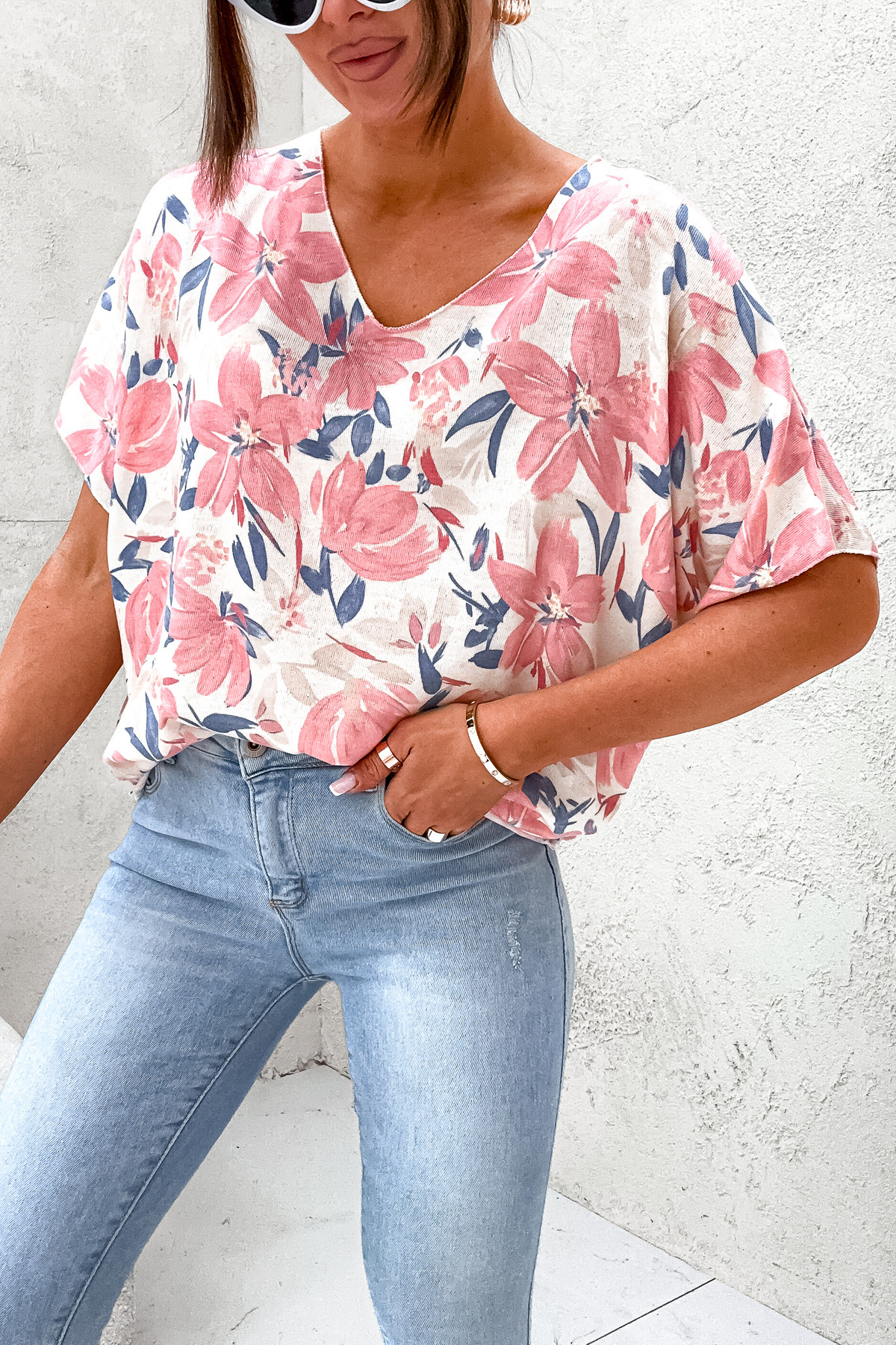 BLUZKA ONESIZE W SZPIC Z MOTYWEM KWIATOWYM- RÓŻOWA