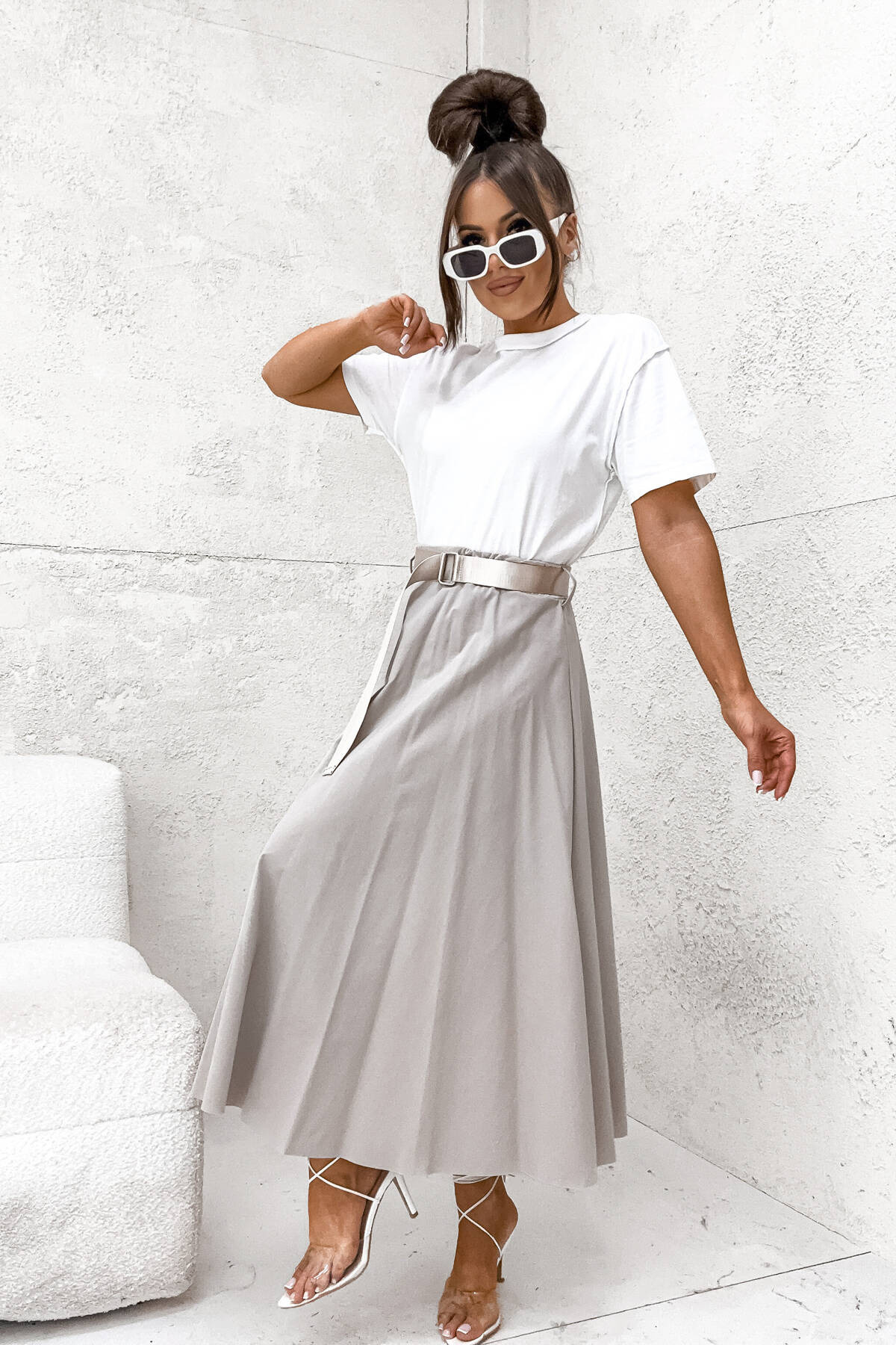 ROZKLOSZOWANA BAWEŁNIANA SPÓDNICA Z PASKIEM- SZARA