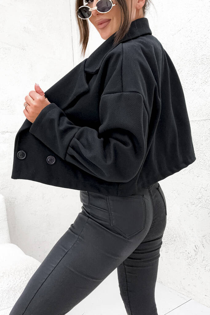 KURTKA DWURZĘDOWA O FASONIE MARYNARKI- CZARNA