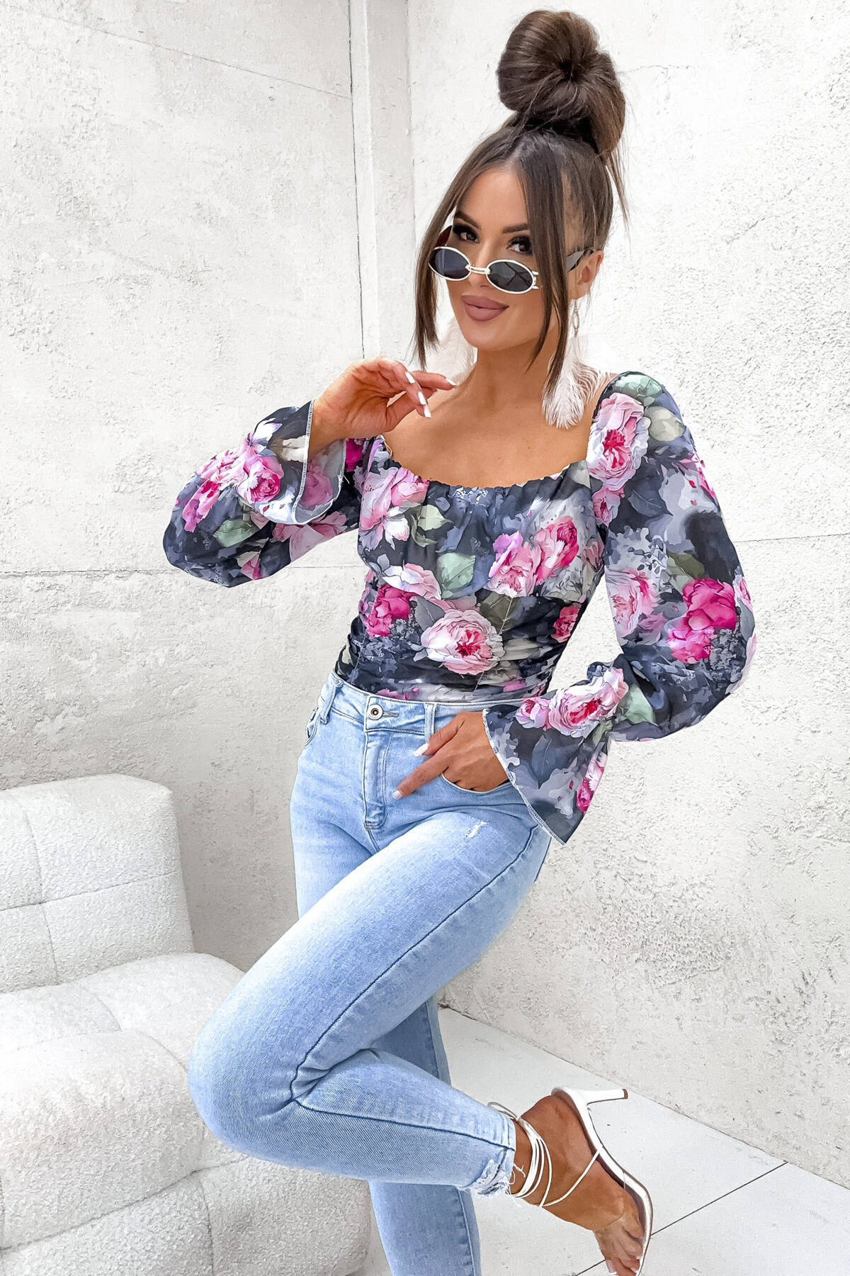 BLUZKA HISZPANKA W KWIATY-CZARNA