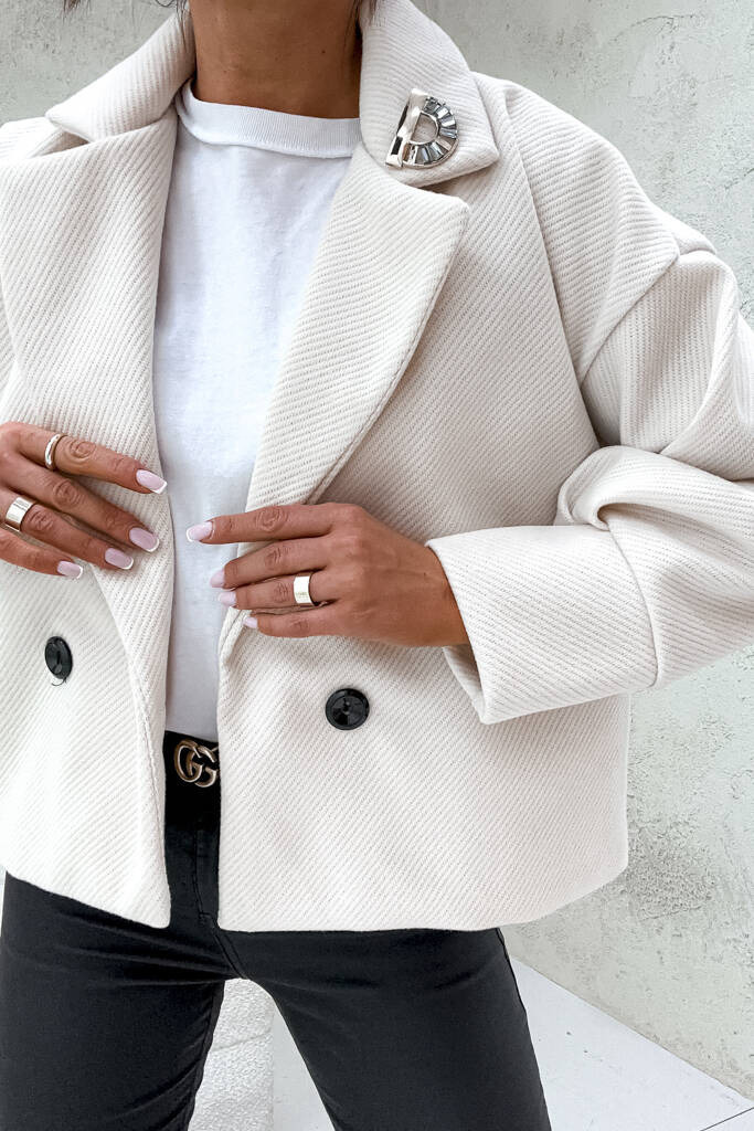 KURTKA DWURZĘDOWA O FASONIE MARYNARKI Z BROSZKĄ- BEŻOWA