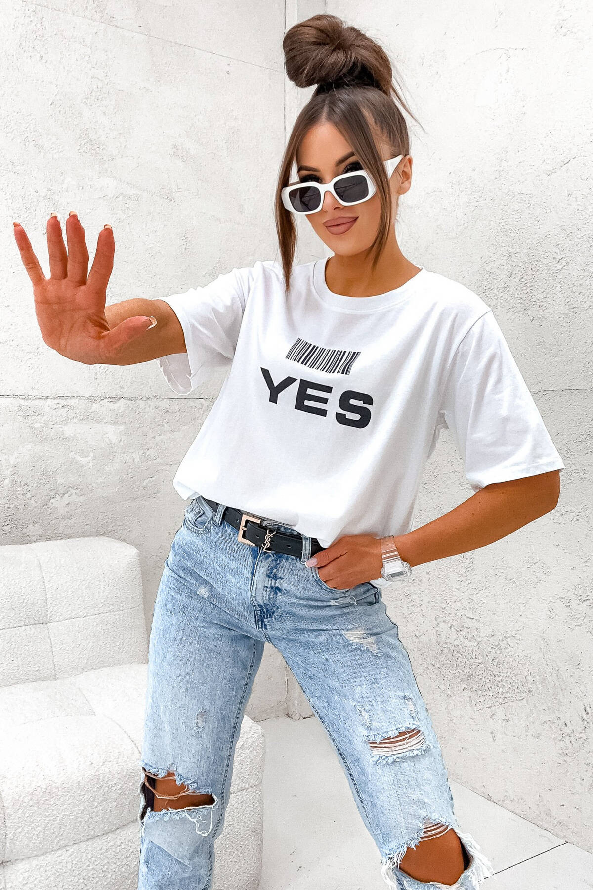 T-SHIRT Z KODEM KRESKOWYM YES-NO- BIAŁA