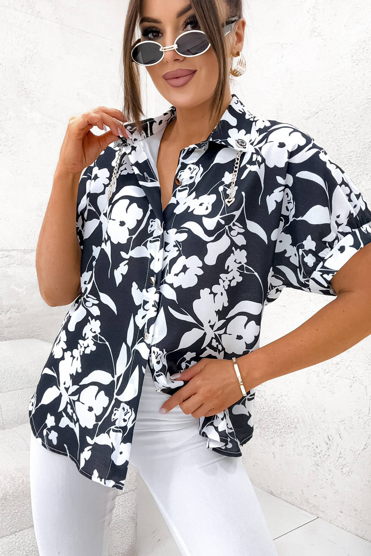 WZORZYSTA BLUZKA ZAPINANA NA GUZIKI Z ŁAŃCUSZKAMI-CZARNA