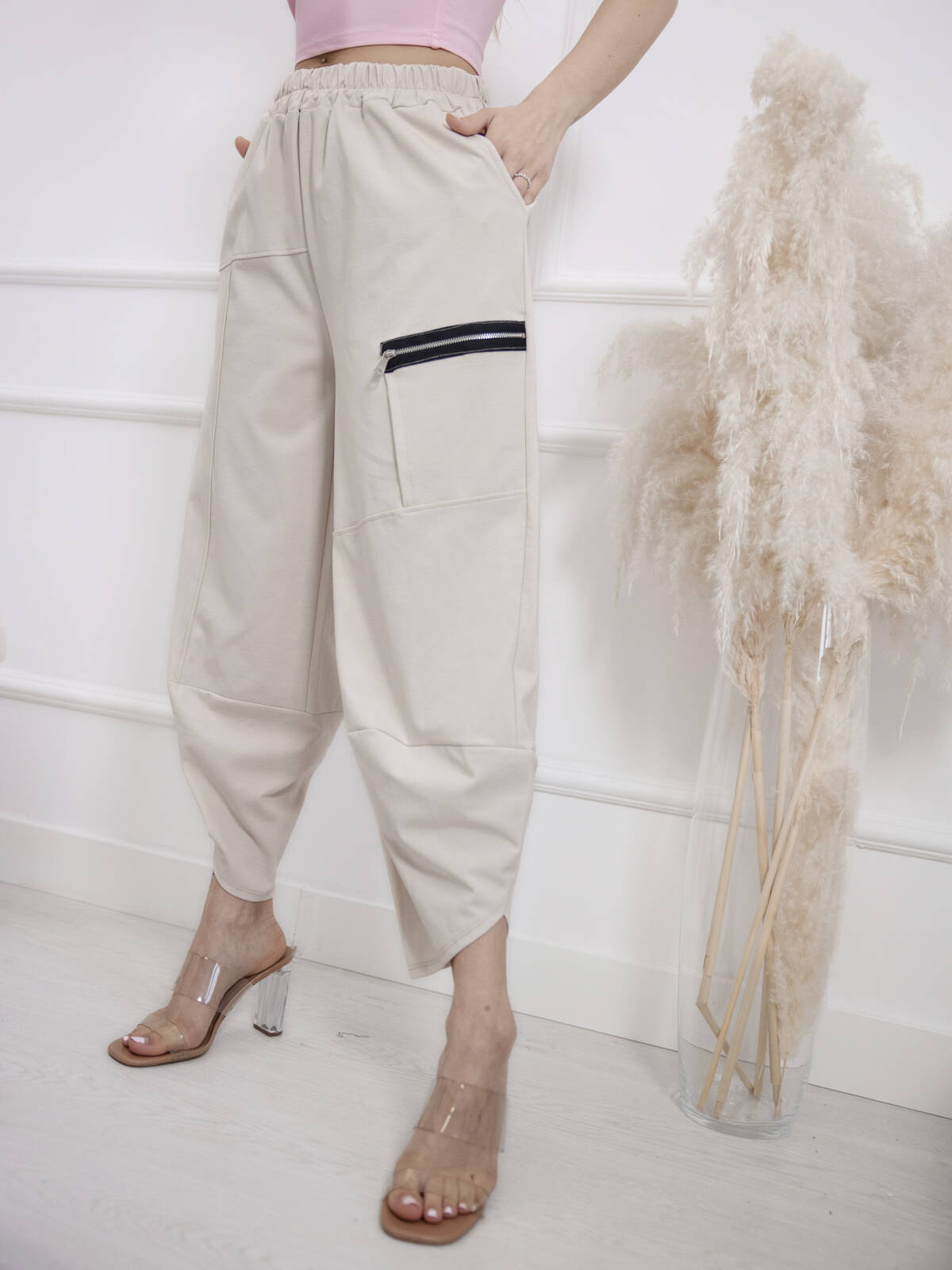 SPODNIE DRESOWE SZEROKIE Z ZAMKIEM NA NOGAWCE- JASNO BEŻOWE