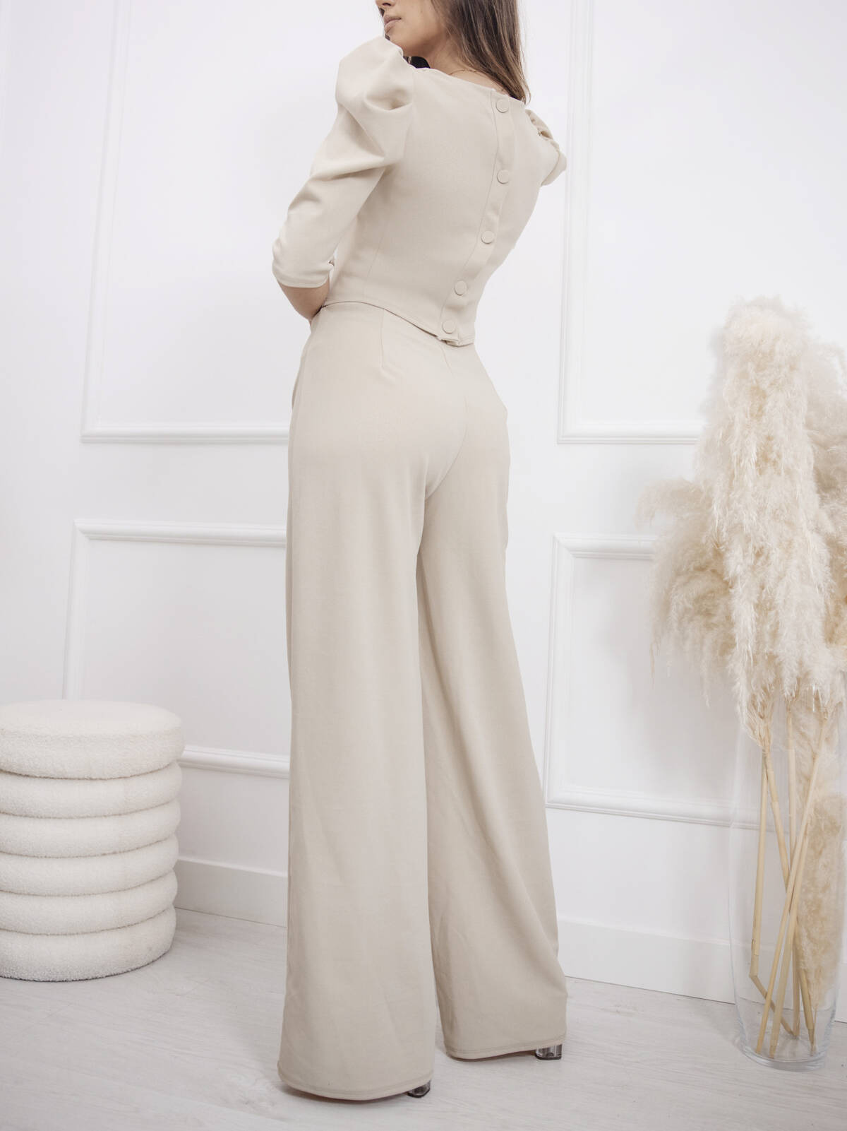 KOMPLET SPODNIE+ TOP Z BUFKAMI ZAPINANY NA GUZIKI- BEŻOWY