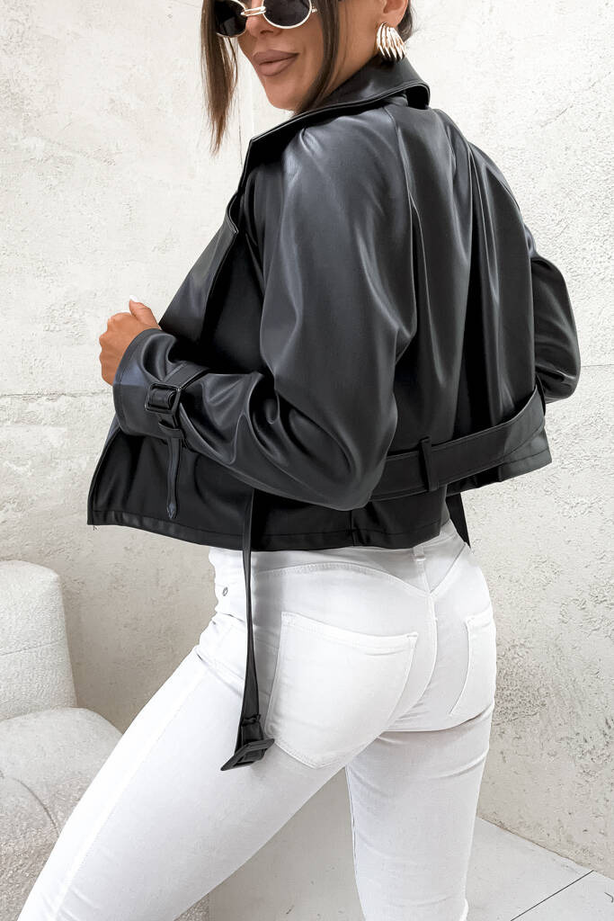 KURTKA KRÓTKI TRENCZ Z IMITACJI SKÓRY- CZARNA