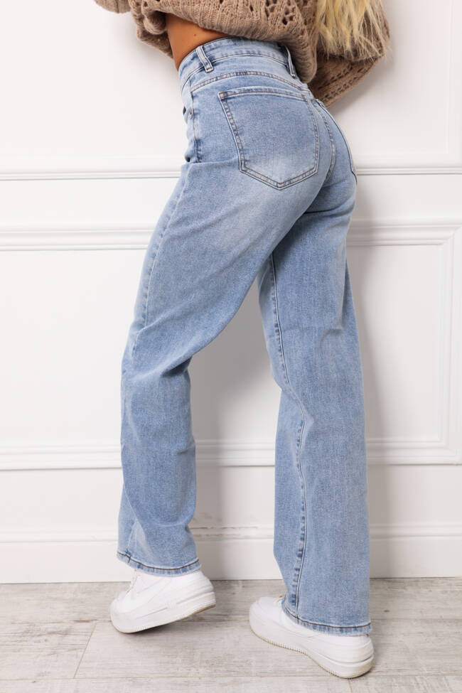 NIEBIESKIE SPODNIE JEANSOWE Z SZEROKIMI NOGAWKAMI