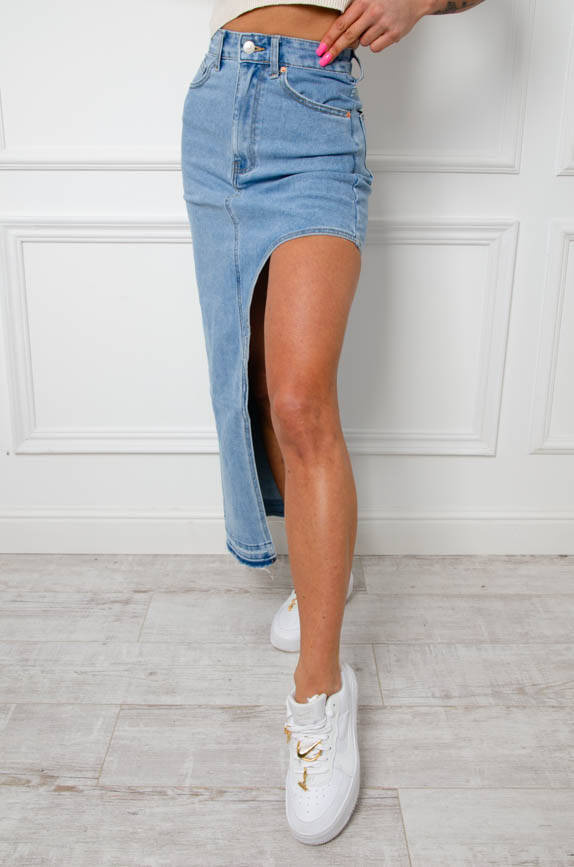 JEANSOWA SPÓDNICA MAXI Z WYCIĘCIEM