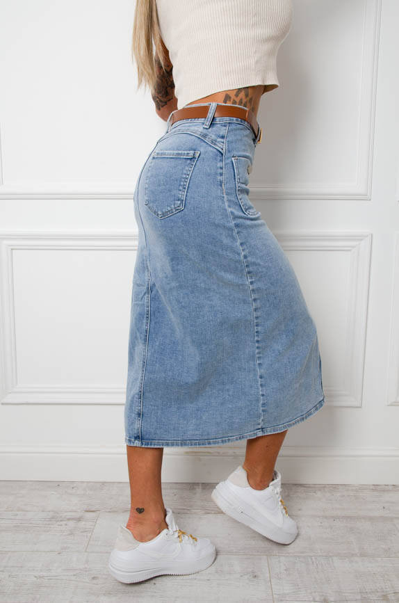 JEANSOWA SPÓDNICA MIDI ZAPINANA NA GUZIKI