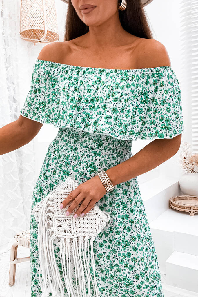 SUKIENKA HISZPANKA MAXI W KWIATY- ZIELONY