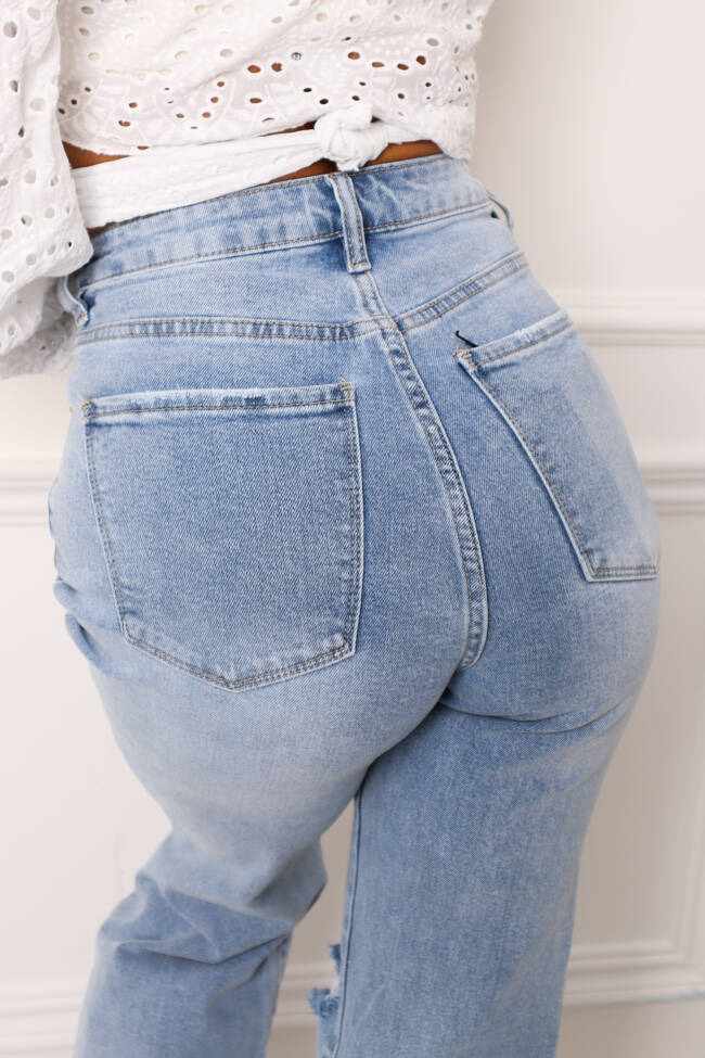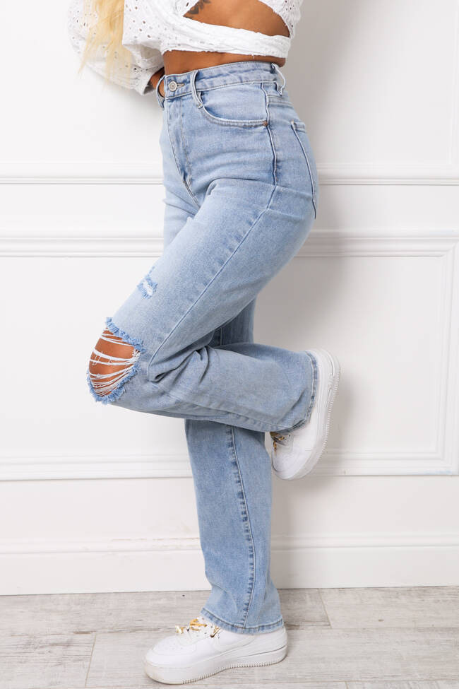 SPODNIE JEANSOWE Z WYSOKIM STANEM I DZIURAMI NA KOLANACH