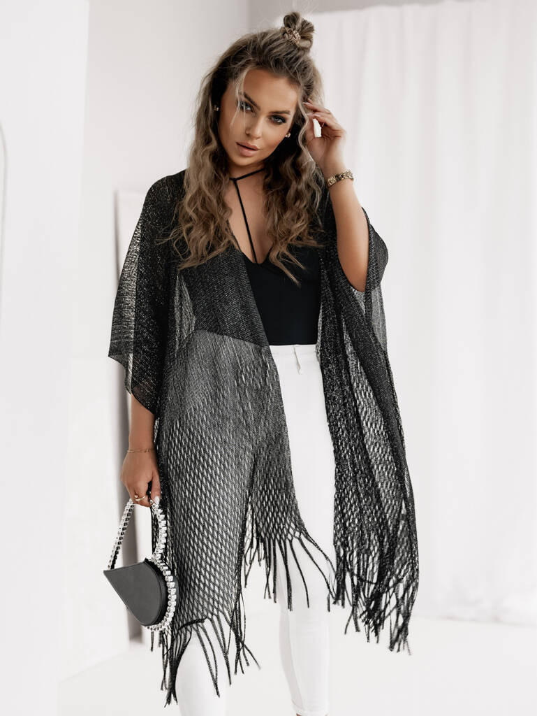 AŻUROWA NARZUTA Z BŁYSZCZĄCĄ NITKĄ- CZARNA