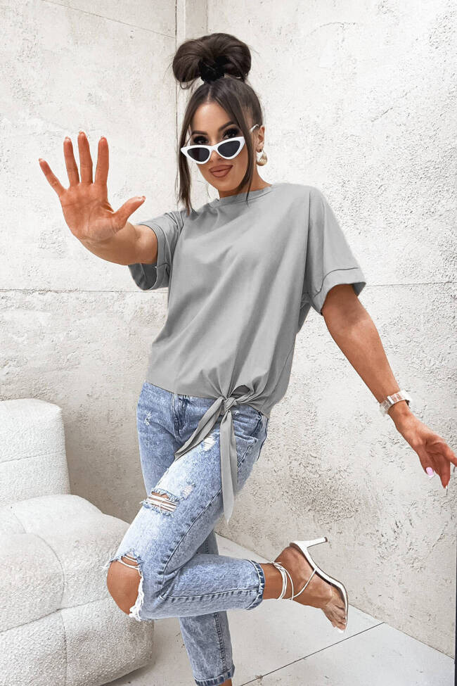 BLUZKA NA KRÓTKI RĘKAW WIĄZANA NA BOKU- SZARA