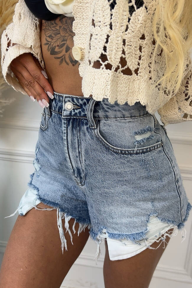 JEANSOWE SZORTY Z PRZETARCIAMI I WYSOKIM STANEM