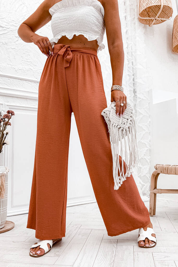 SPODNIE SZEROKIE Z GUMĄ I WIĄZANIEM W PASIE- CEGLASTY