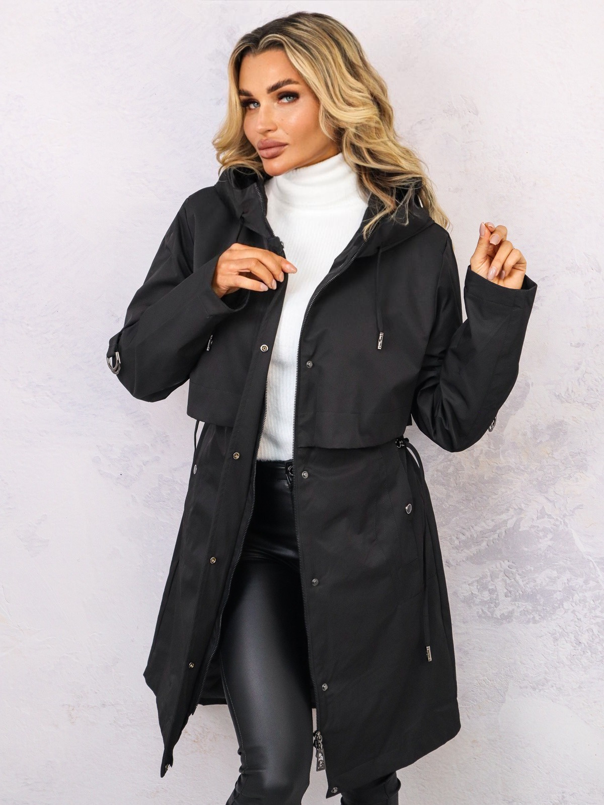 CZARNA DŁUGA KURTKA PARKA PRZEJŚCIOWA