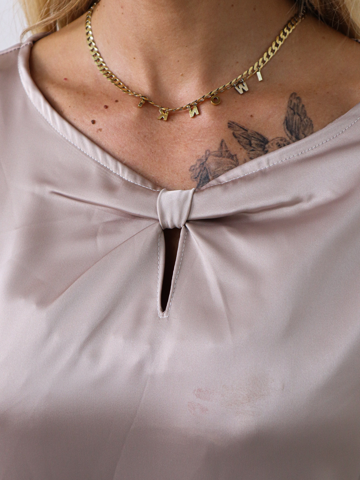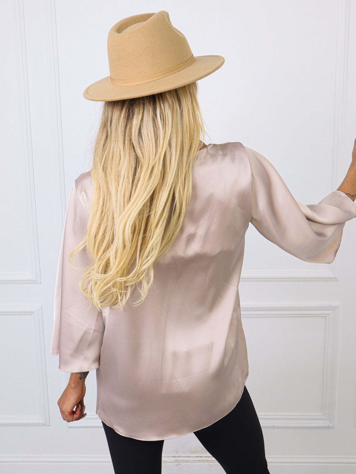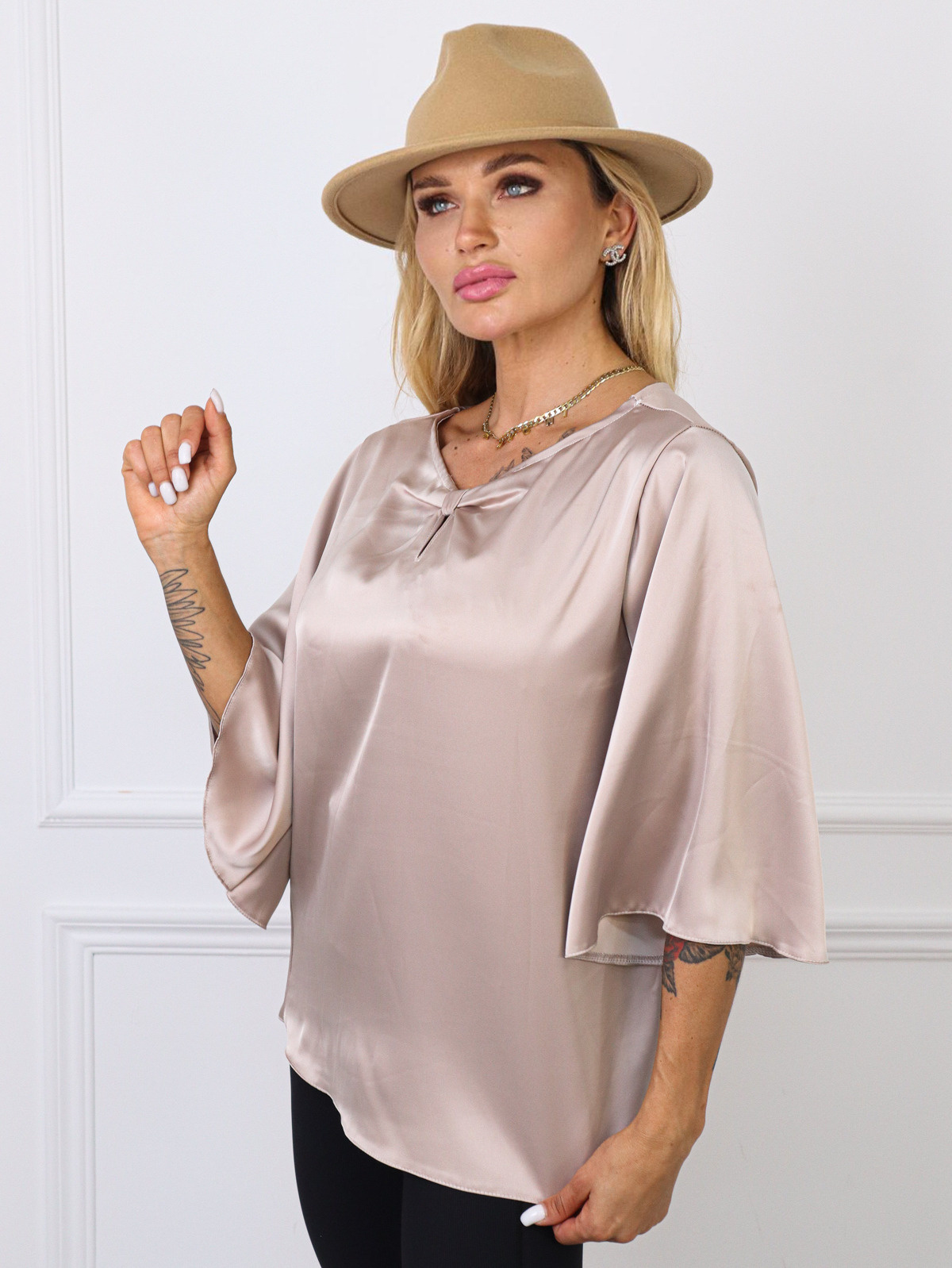 BLUZKA SATYNOWA Z ROZSZERZANYMI RĘKAWAMI- BEŻOWA