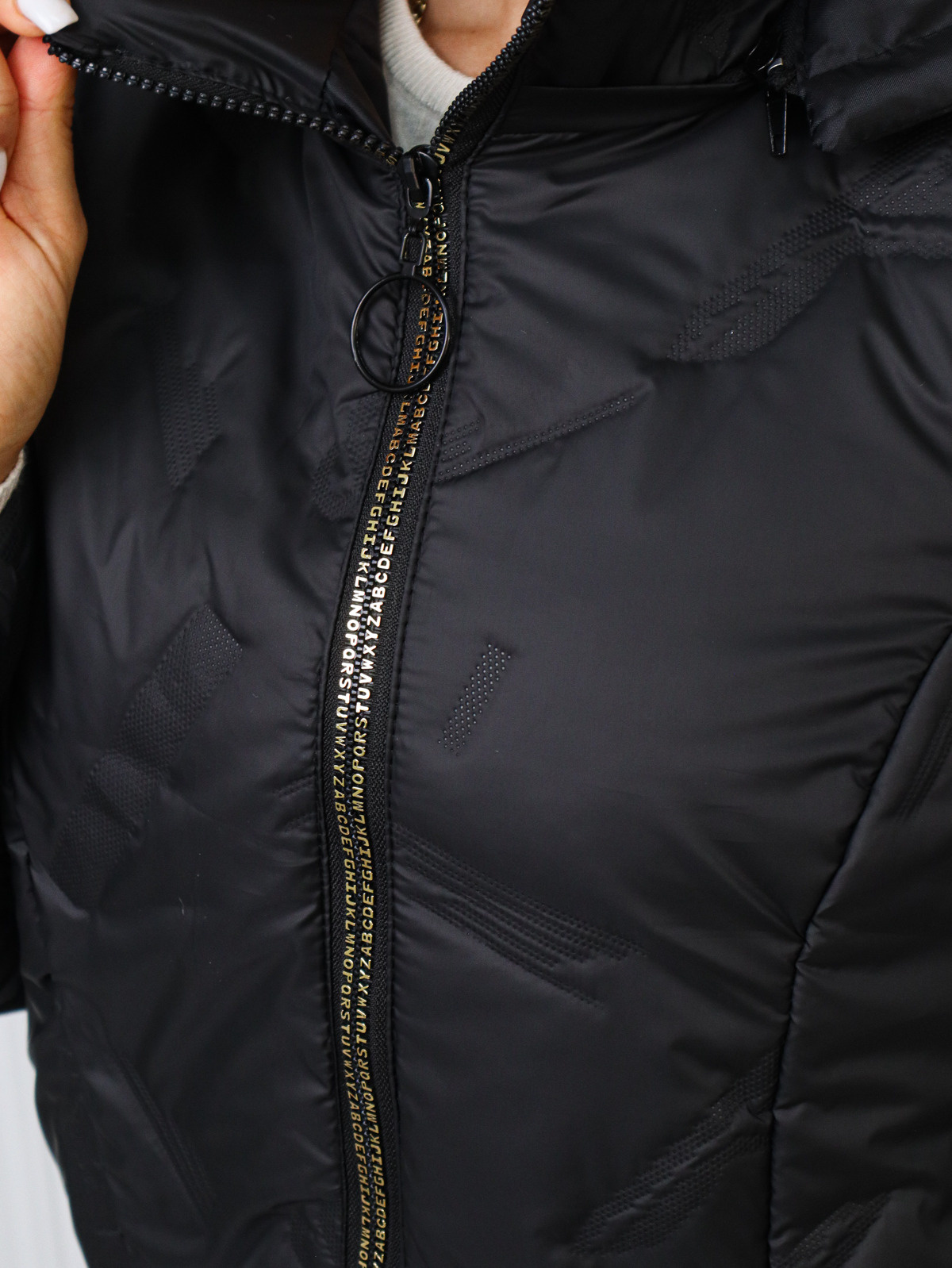 KURTKA PRZEJŚCIOWA PIKOWANA Z KAPTUREM I OZDOBNYM ZAMKIEM- CZARNA