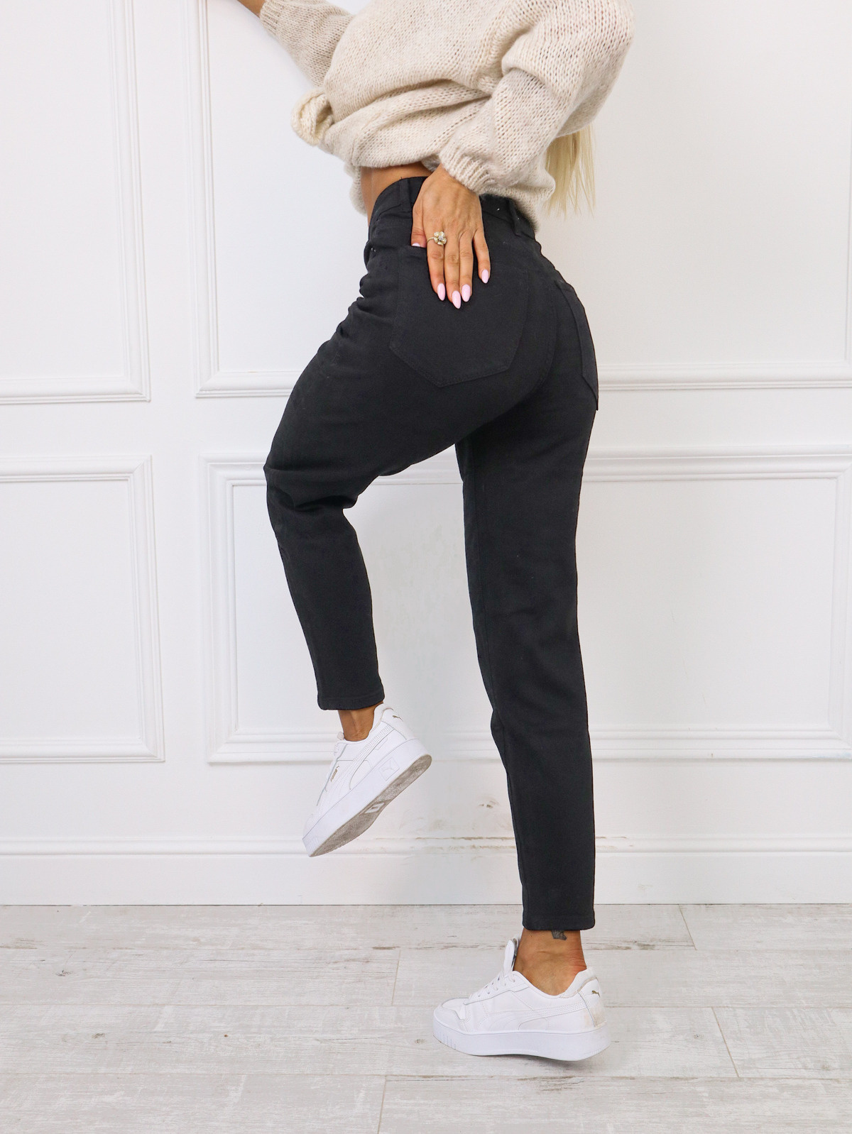 SPODNIE JEANSOWE- MOM STRETCH- CZARNE