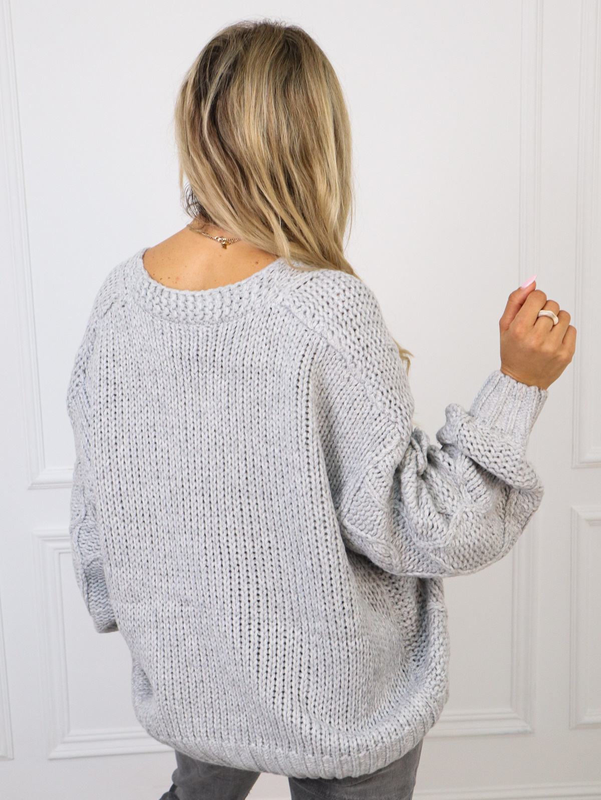 SWETER ROZPINANY Z OZDOBYMI NASZYWANYMI KWIATAMI-SZARY