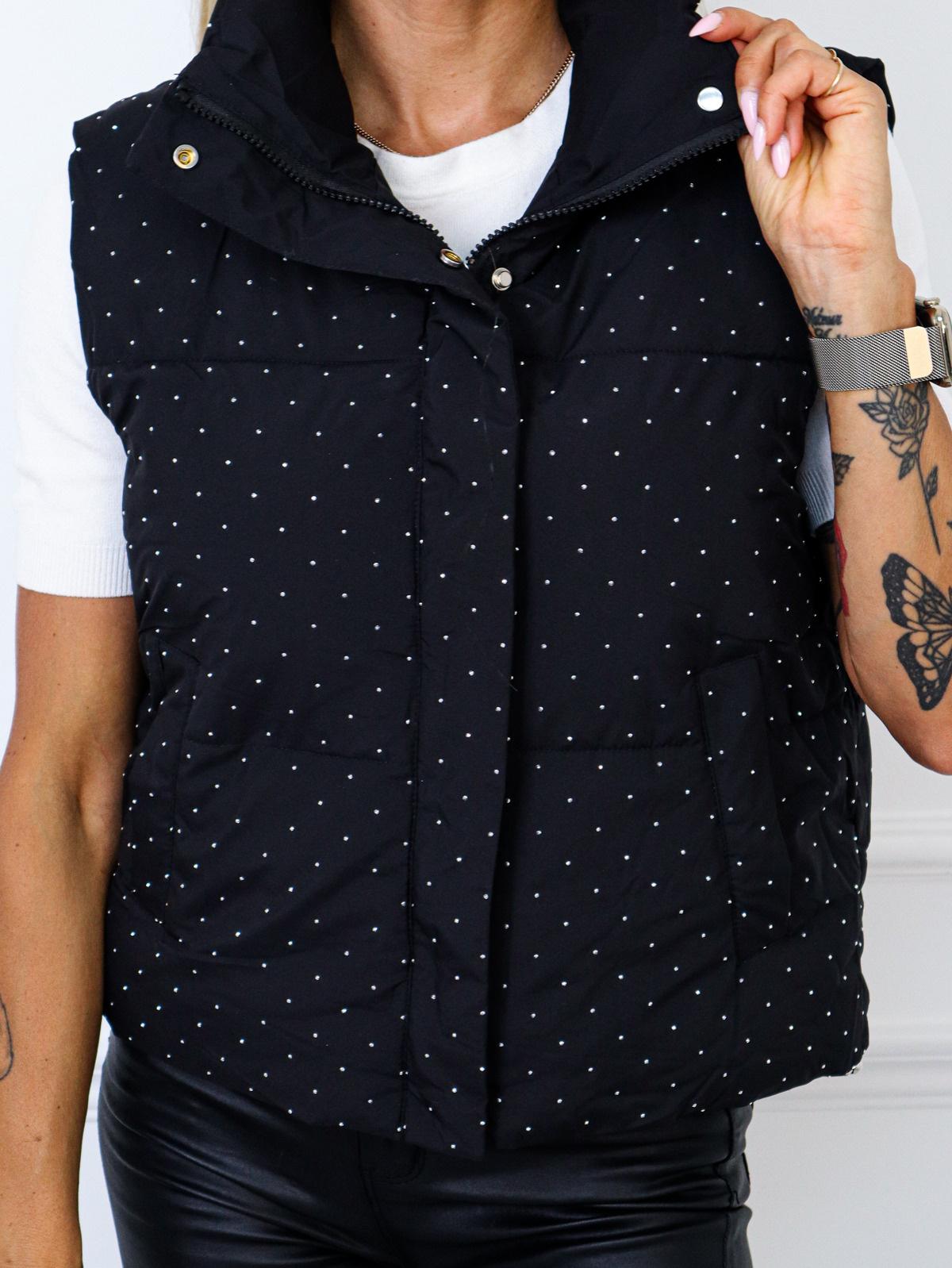 KAMIZELKA KRÓTKA PIKOWANA Z CYRKONIAMI-CZARNA