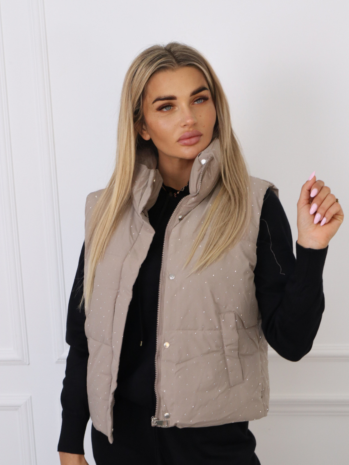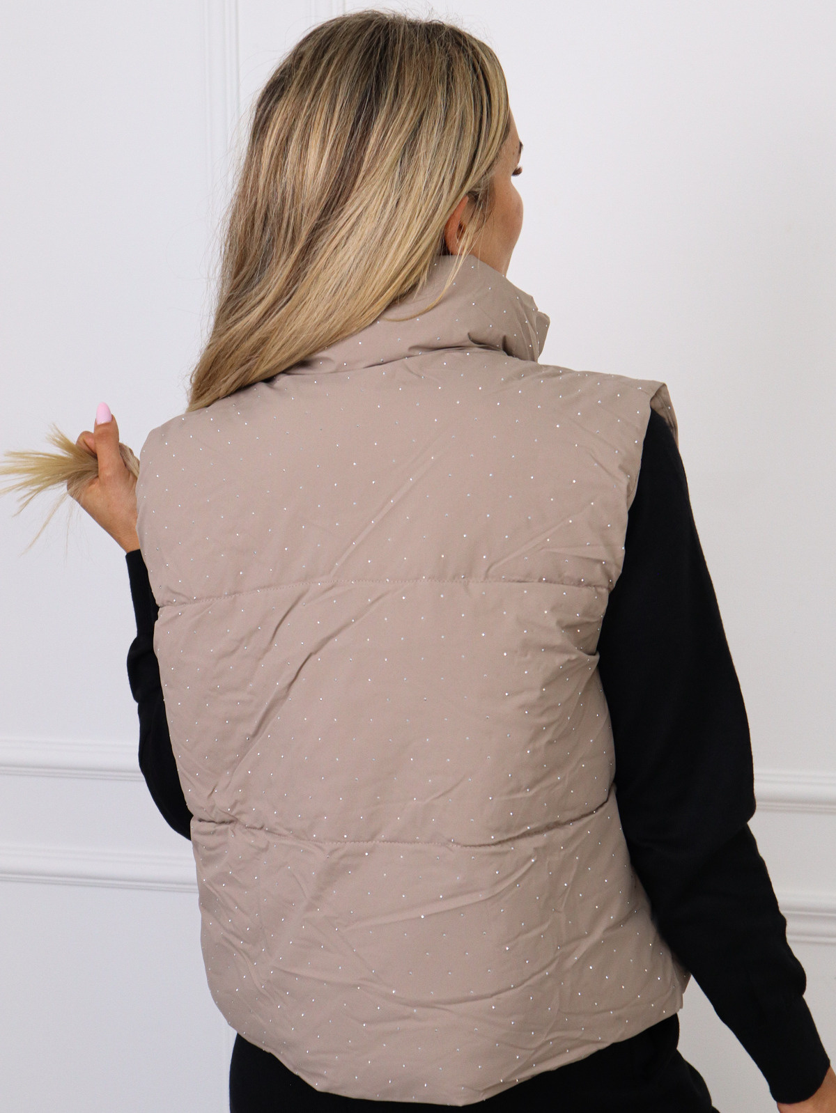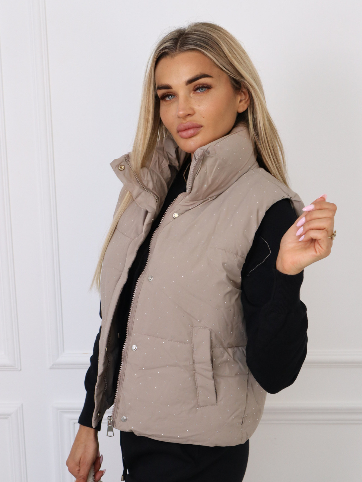 KAMIZELKA KRÓTKA PIKOWANA Z CYRKONIAMI- BEŻOWA