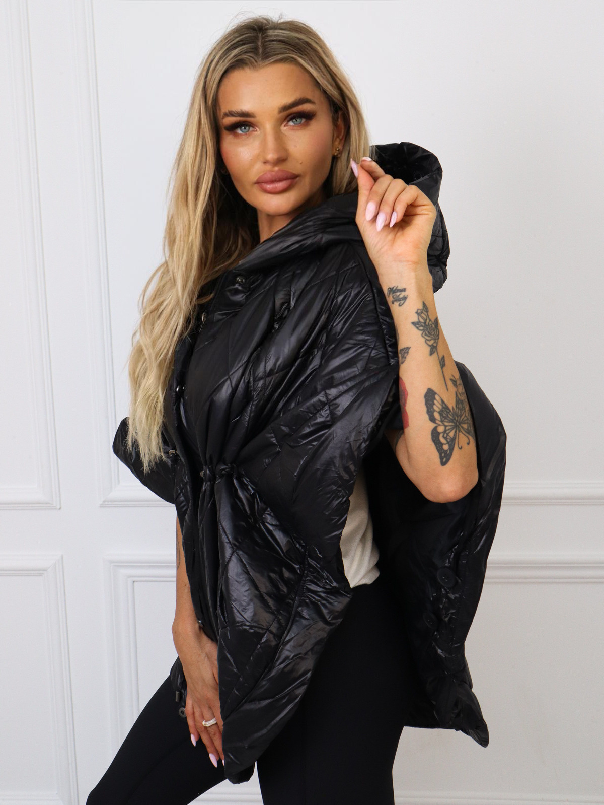 KURTKA PONCZO Z GUZIKAMI PO BOKACH- CZARNA