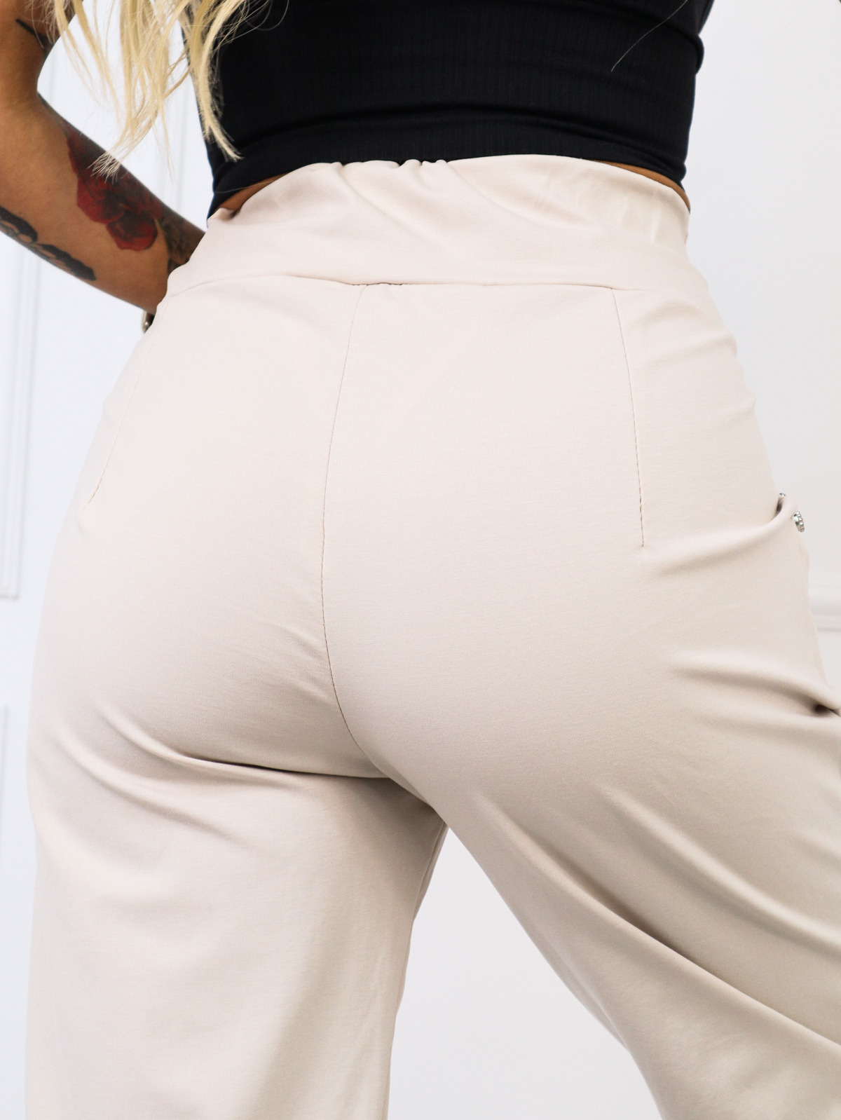 MATERIAŁOWE SPODNIE Z OZDOBNYMI CEKINAMI PRZY KIESZENIACH- JASNO BEŻOWE