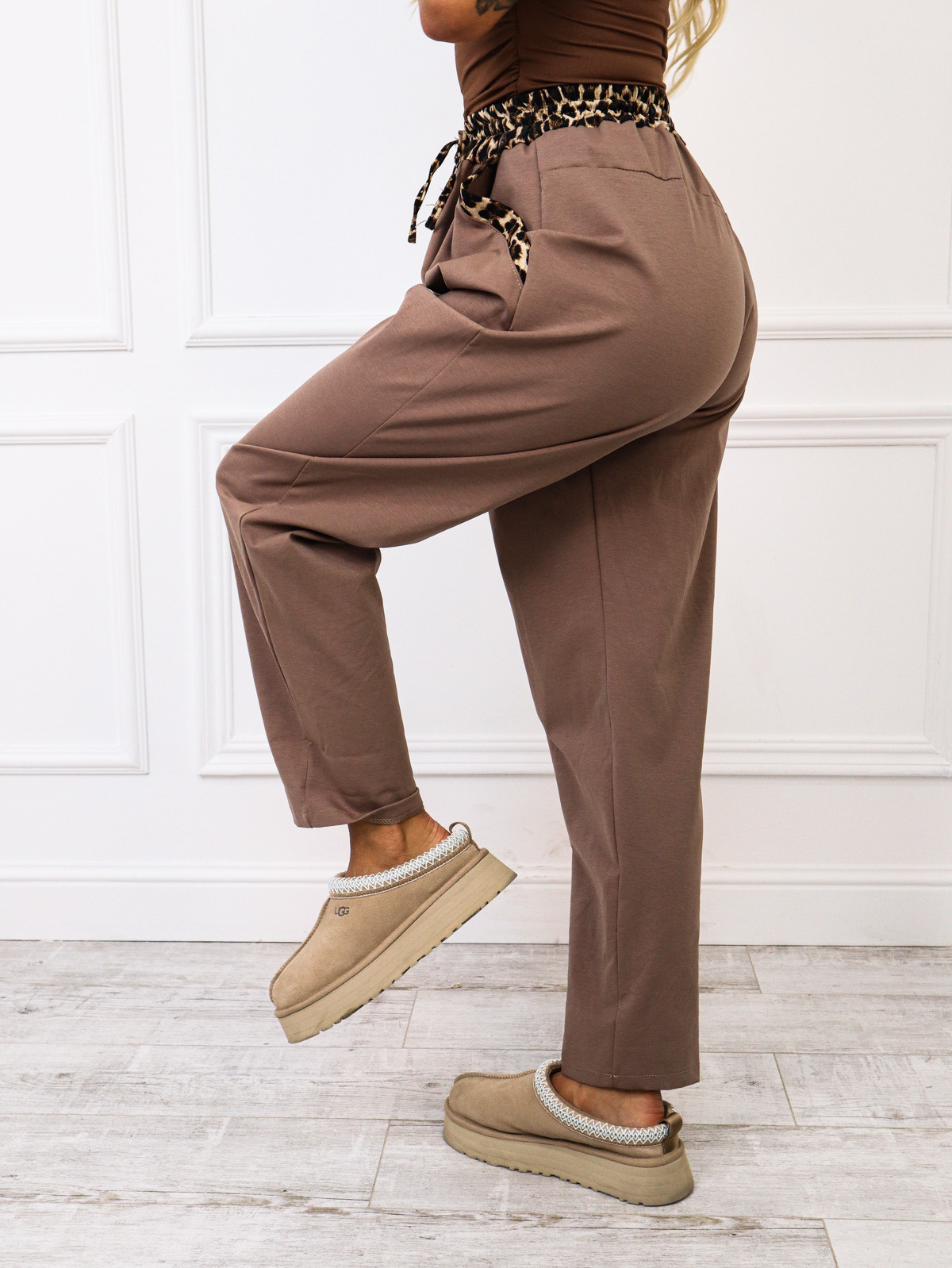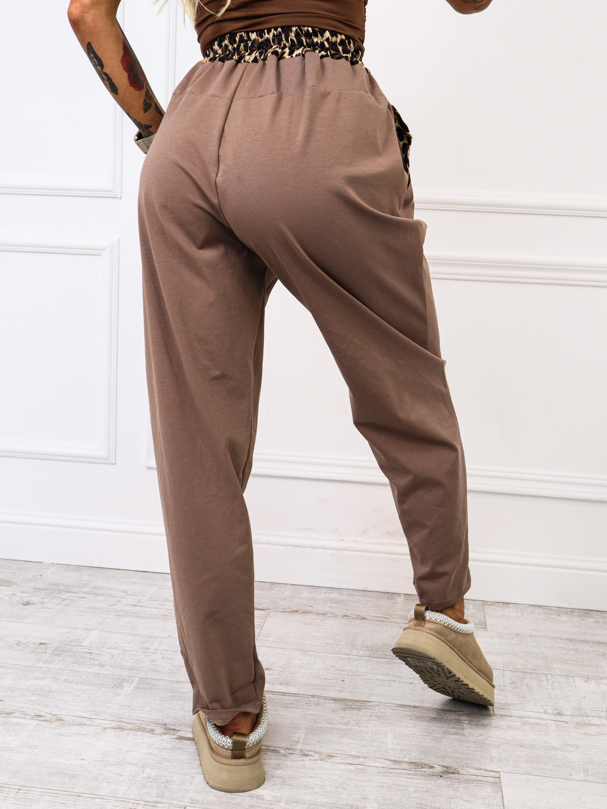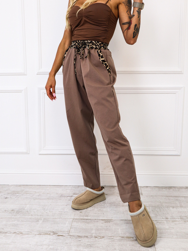 MATERIAŁOWE SPODNIE Z OZDOBNYMI PANTERKOWYMI WSTAWKAMI- BEŻOWE