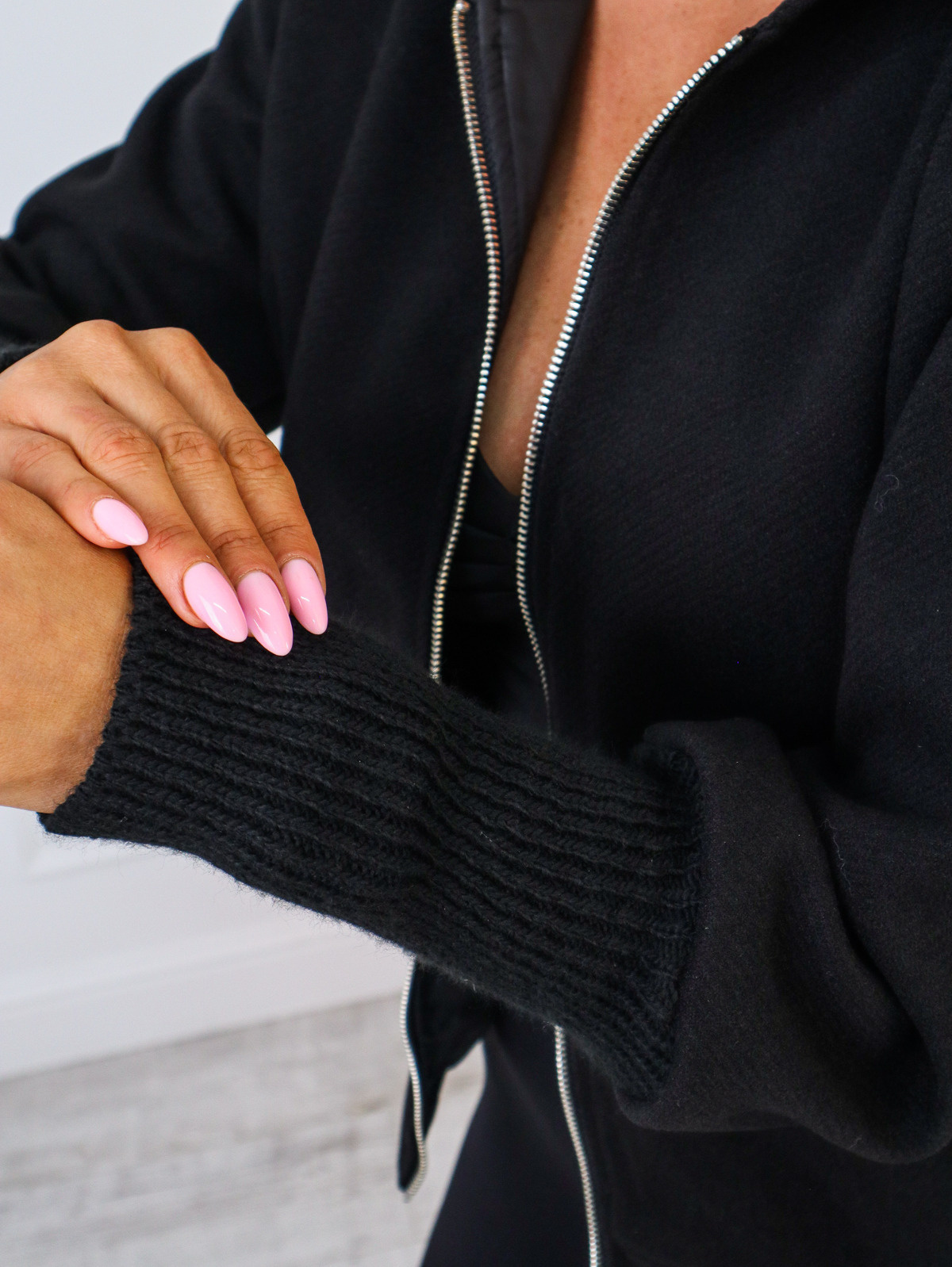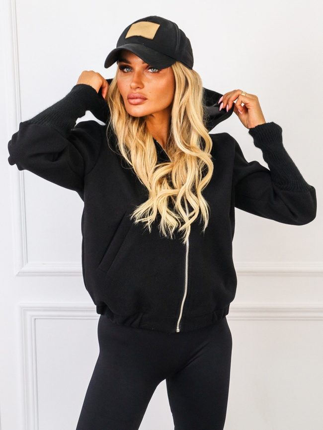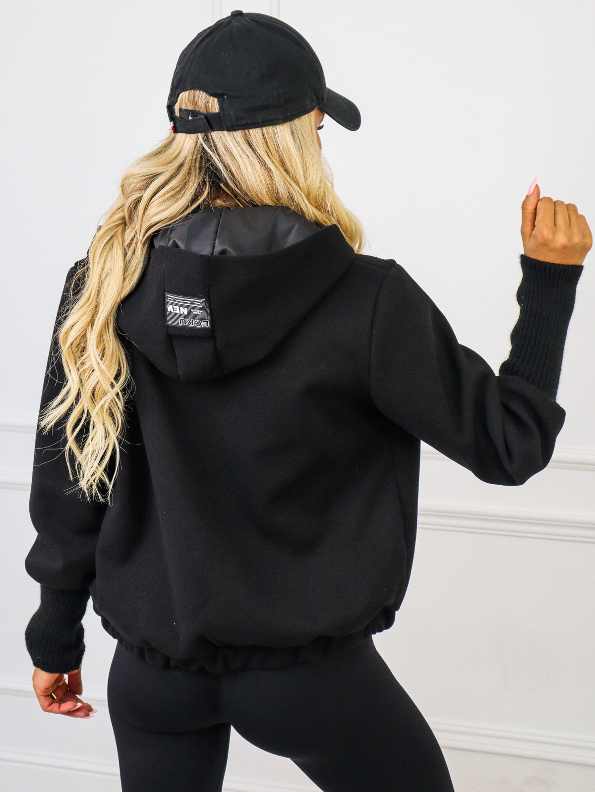 KURTKA Z KAPTUREM I DŁUGIM ŚCIAGACZEM NA RĘKAWIE- CZARNA