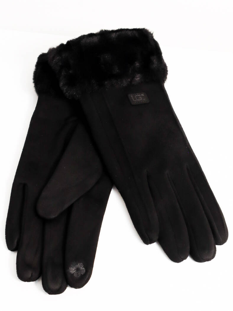Rękawiczki wykonane z miłej w dotyku tkaniny, posiadają niewielkie naszywki oraz futerkowe wykończenie. Na palcach wskazujących rękawiczek znajdują się specjalne aplikacje w kształcie kwiatka, które umożliwiają korzystanie z telefonu z dotykowym ekranem.