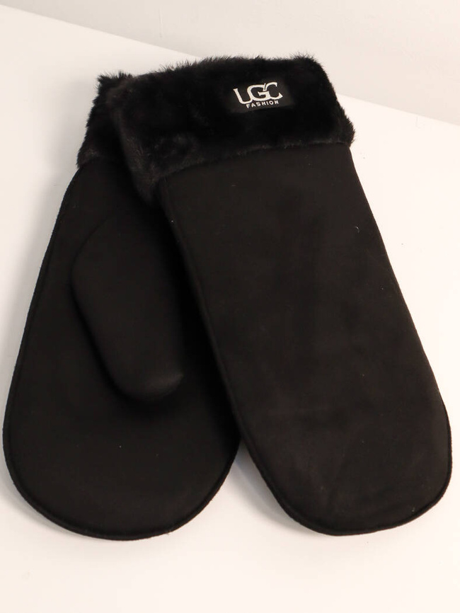 RĘKAWICZKI ZAMSZOWE Z FUTRZANYM ŚCIAGACZEM Z JEDNYM PALCEM Z LOGIEM LGC- CZARNE