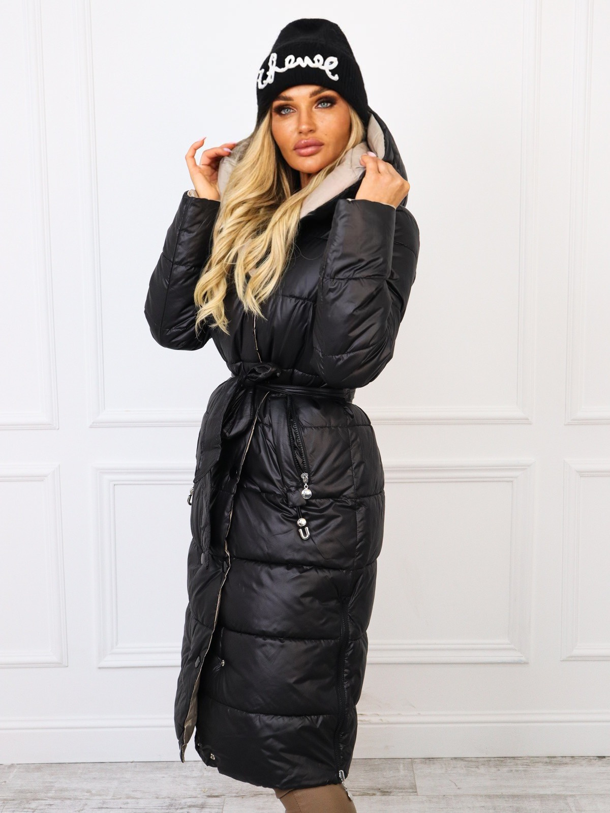 PŁASZCZ DWUSTRONNY Z WIĄZANIEM W PASIE- CZARNO-BEŻOWY