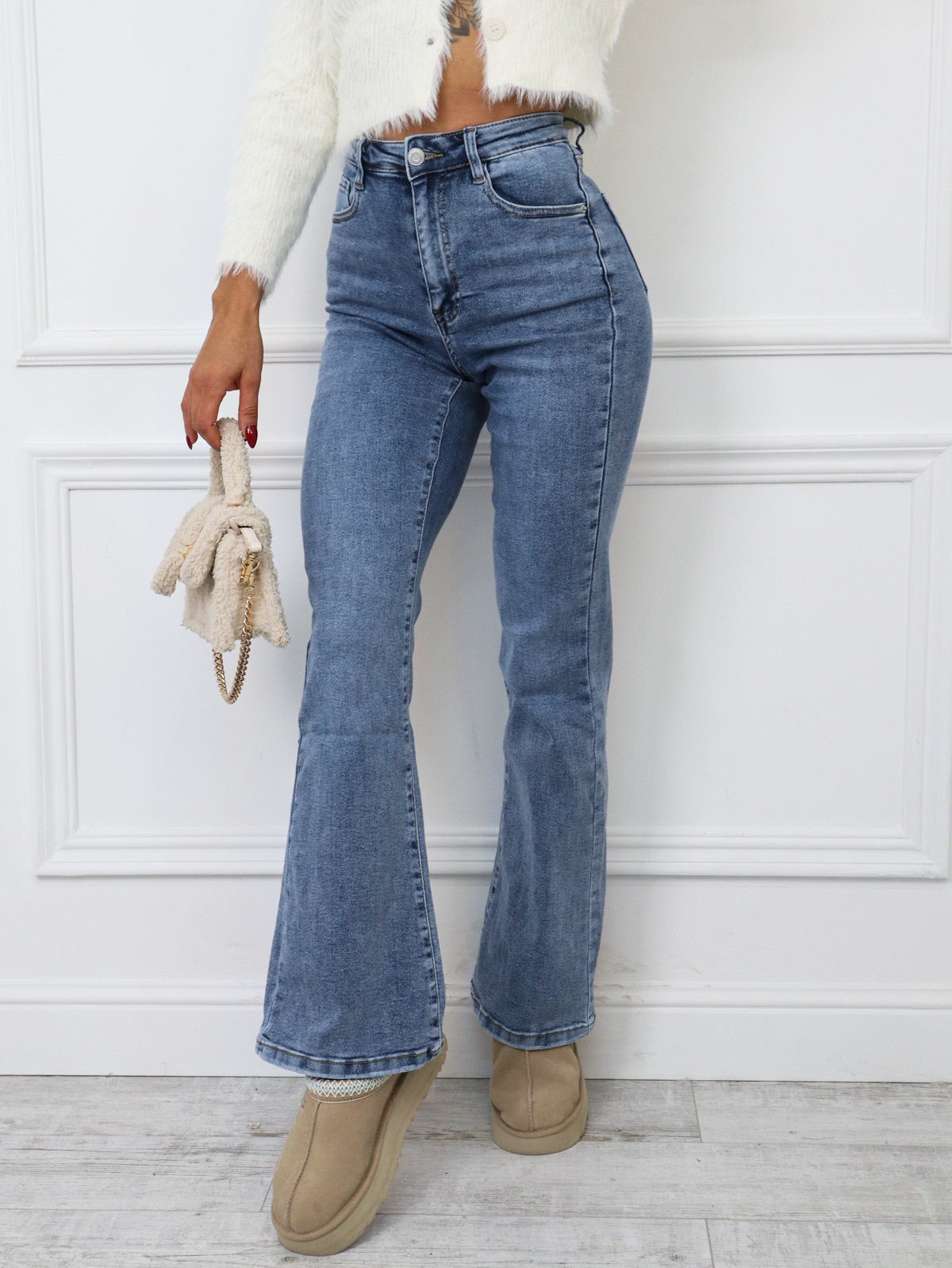 Spodnie jeansowe flare jeans. Rozszerzane nogawki na dole, miękki i elastyczny jeans który idealnie dopasowuje się do sylwetki.