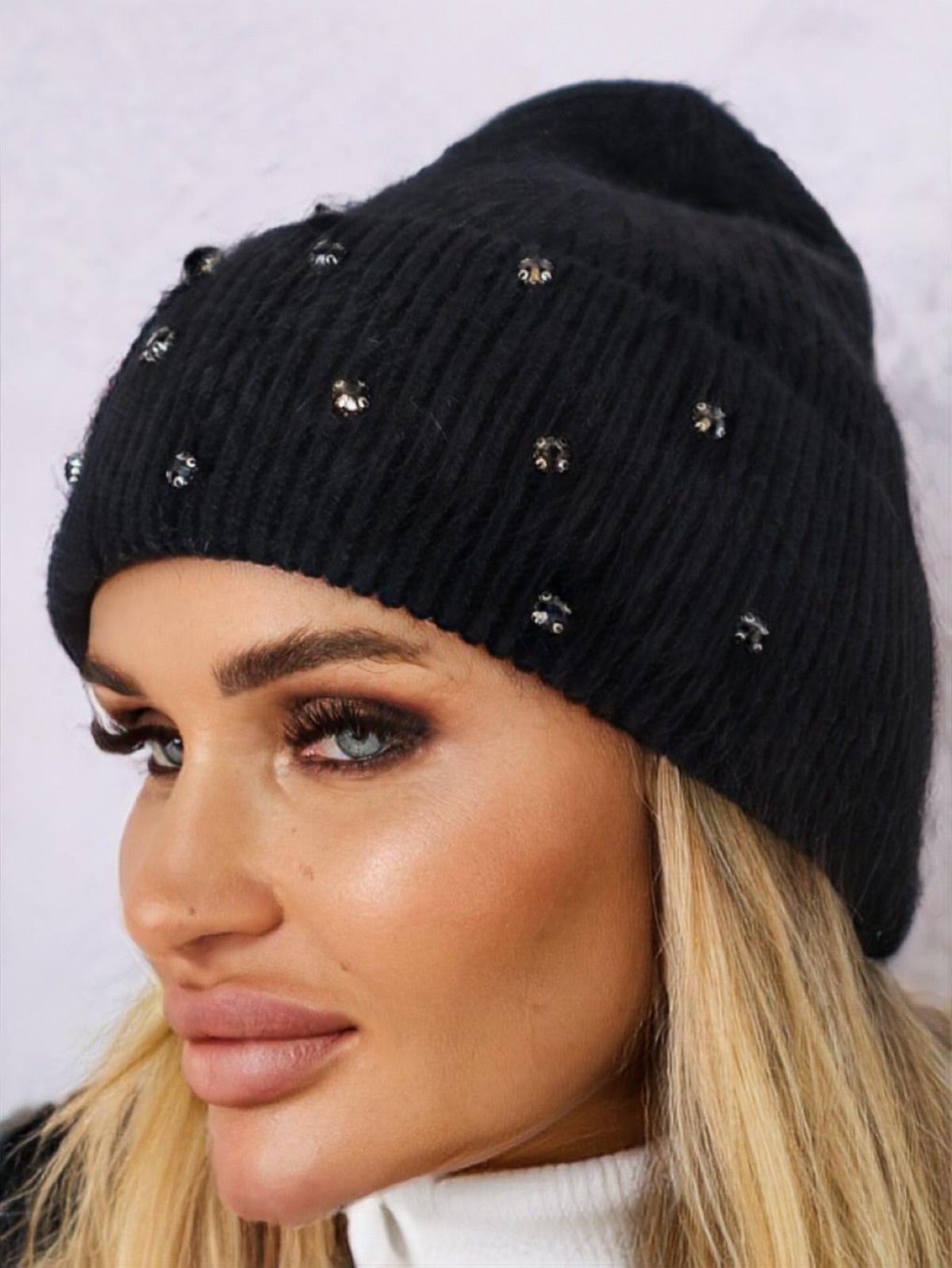 CZAPKA ZIMOWA Z CYRKONIAMI- CZARNA