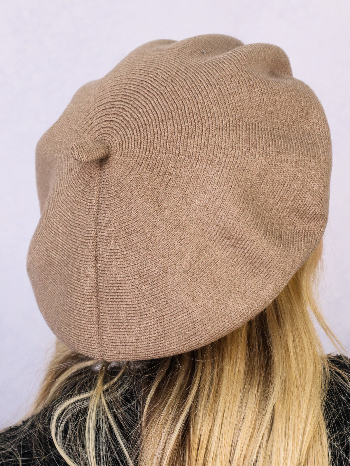 BERET DAMSKI Z BROSZKĄ- BRĄZOWY