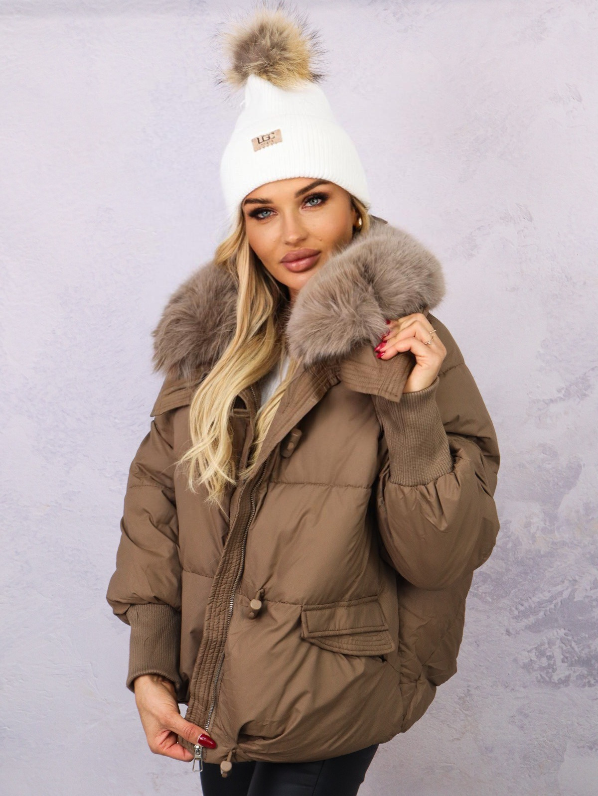 KURTKA OVERSIZE Z FUTERKIEM- BRĄZOWA