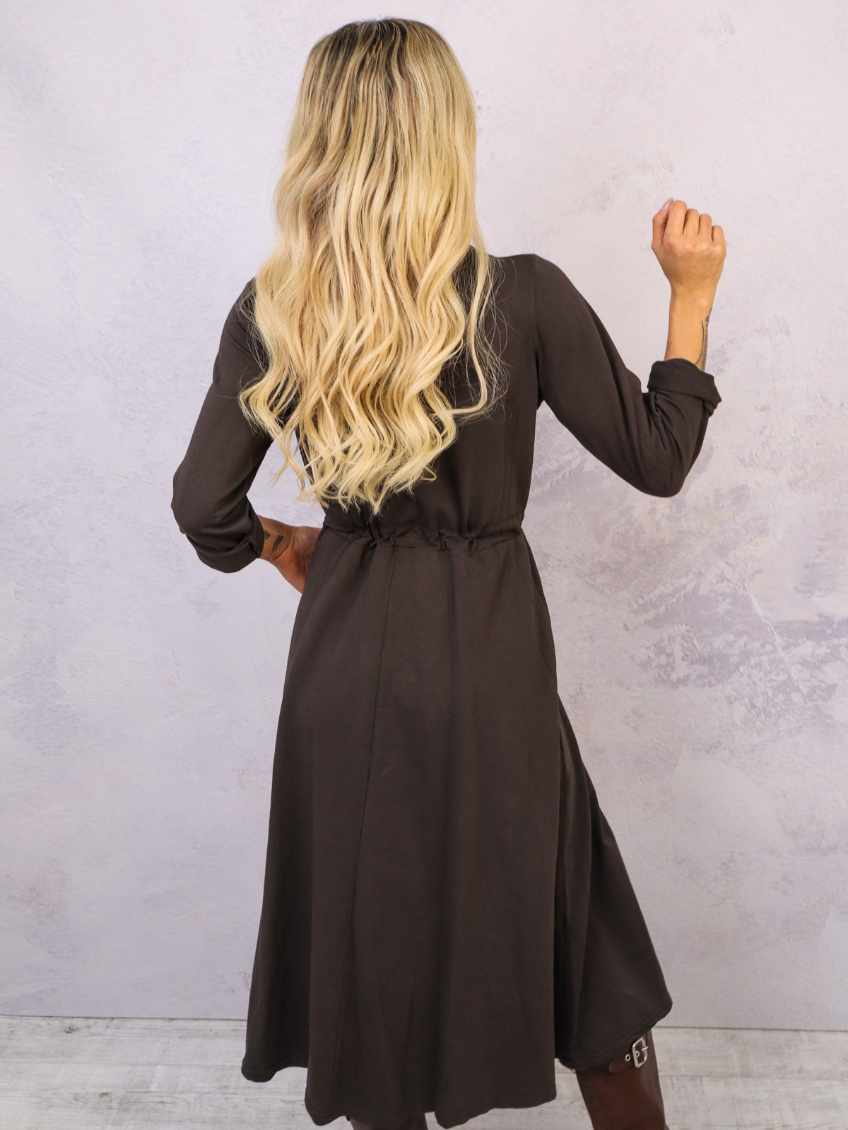 SUKIENKA MIDI WIĄZANA W PASIE- CIEMNO BRĄZOWA