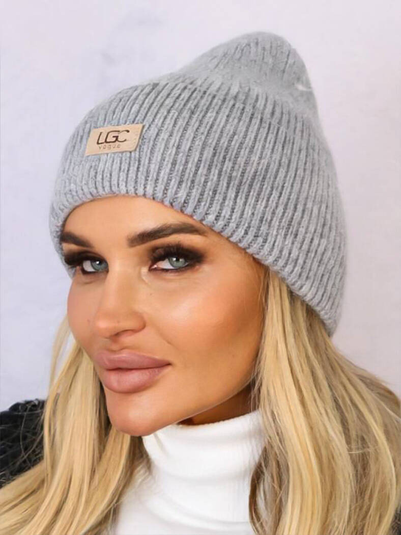 Czapka z mankietem i ozdobną naszywką LGC . Jest bardzo ciepła, puszysta i miękka. Dzianina jest elastyczna i dobrze dopasowuje się do głowy. Niezbędnik w trakcie chłodnych dni.